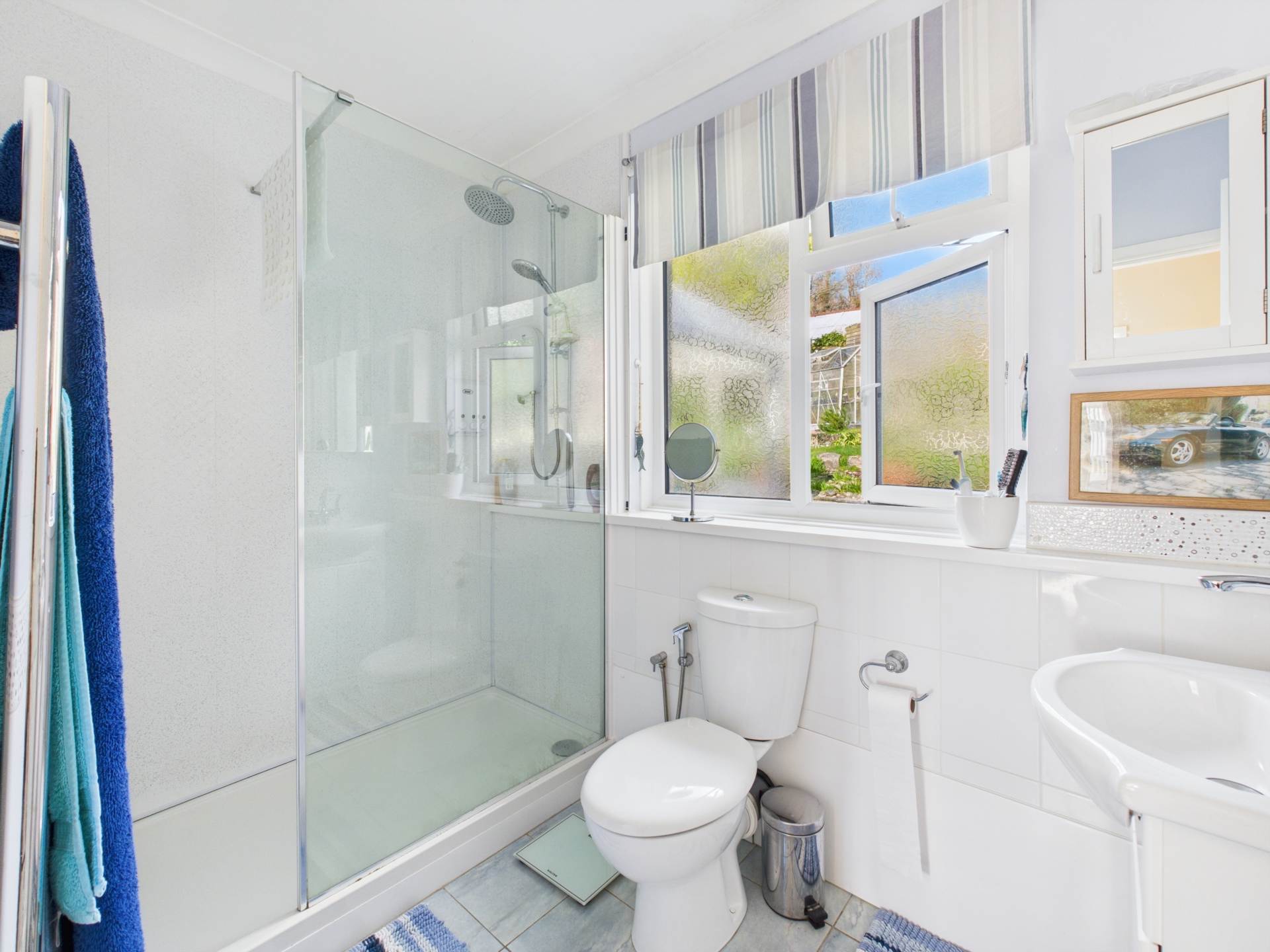 Bedroom 1 is a double bedroom and includes bedroom furniture and display units. Bedroom 2 is a double bedroom which would be ideal as a guest room hanging fitted wardrobes and a vanity unit. Bedroom Three faces the front again enjoying the views. The Cloakroom then follows and to finish there is a Shower room complete with low level WC, vanity unit, walk in shower with two shower heads and aqua waterproof wall covering.