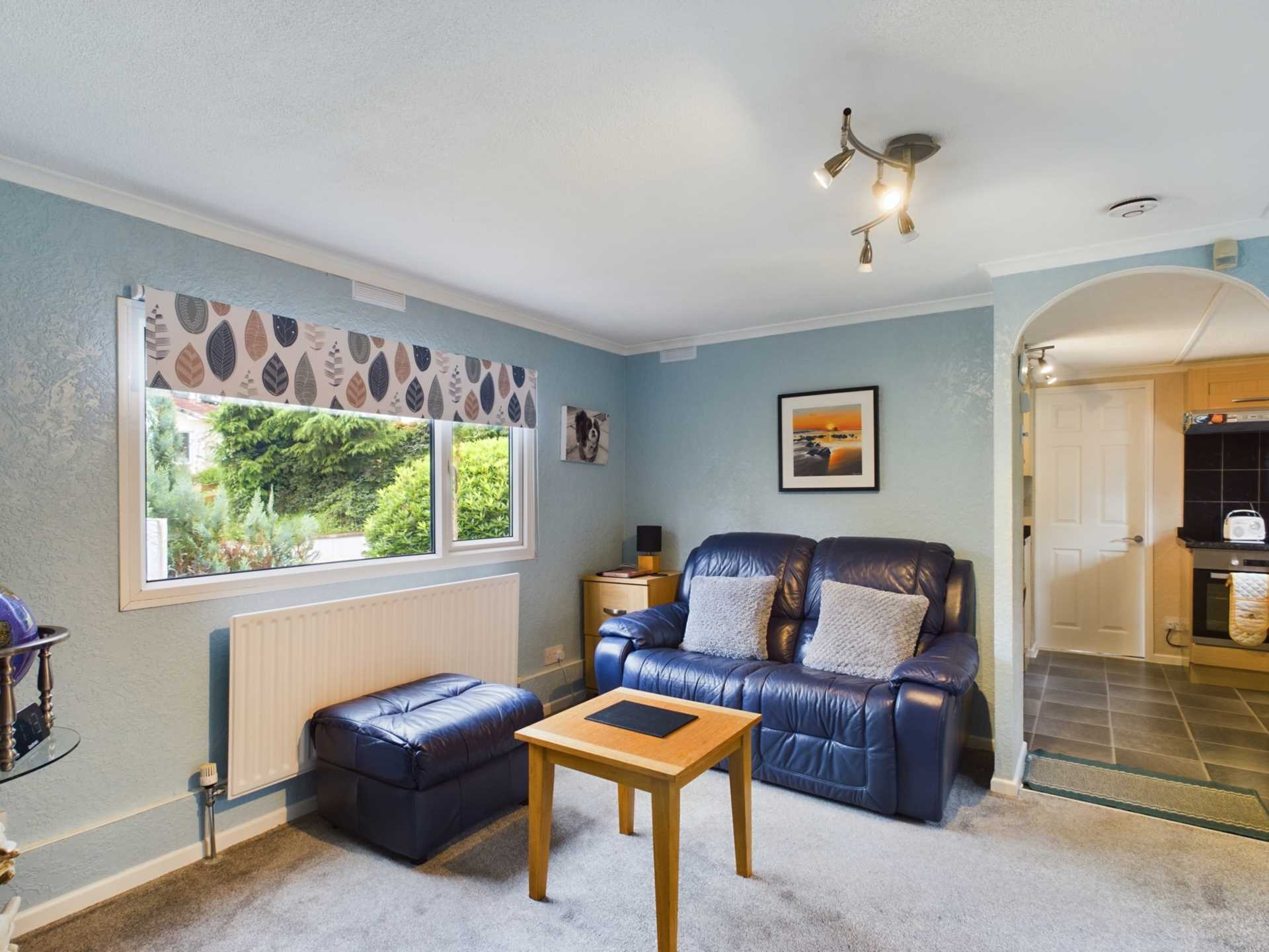 The property is approached through the parking area via a pathway, with steps leading up to the main Entrance. A door opens to the modern Kitchen which has a range of wall and base units, with roll top work surfaces , matching up stands and corner display cabinets. There is a built in Electric hob with extractor over and oven below, plus a built in fridge. The Lounge being double aspect, is nice and light, with ample room for reception furniture plus a small dining room table and chairs. There is an Inner Hallway which gives access to bedroom 2, the shower room and a utility room. The Shower room has a walk in shower area with WC. and wash hand basin. There is also a separate Cloakroom, which includes a low level WC and wash hand basin facing to the rear. The Utility room obviously provides additional room for white goods and has plumbing for a washing machine and space for tumble dryer. Bedroom 1 is a double room and faces the front. Bedroom 2 is also a double room fitted with a range of wardrobes and facing to the rear overlooking the garden and woodland. The property is warmed via oil fired central heating and has uPVC double glazing.