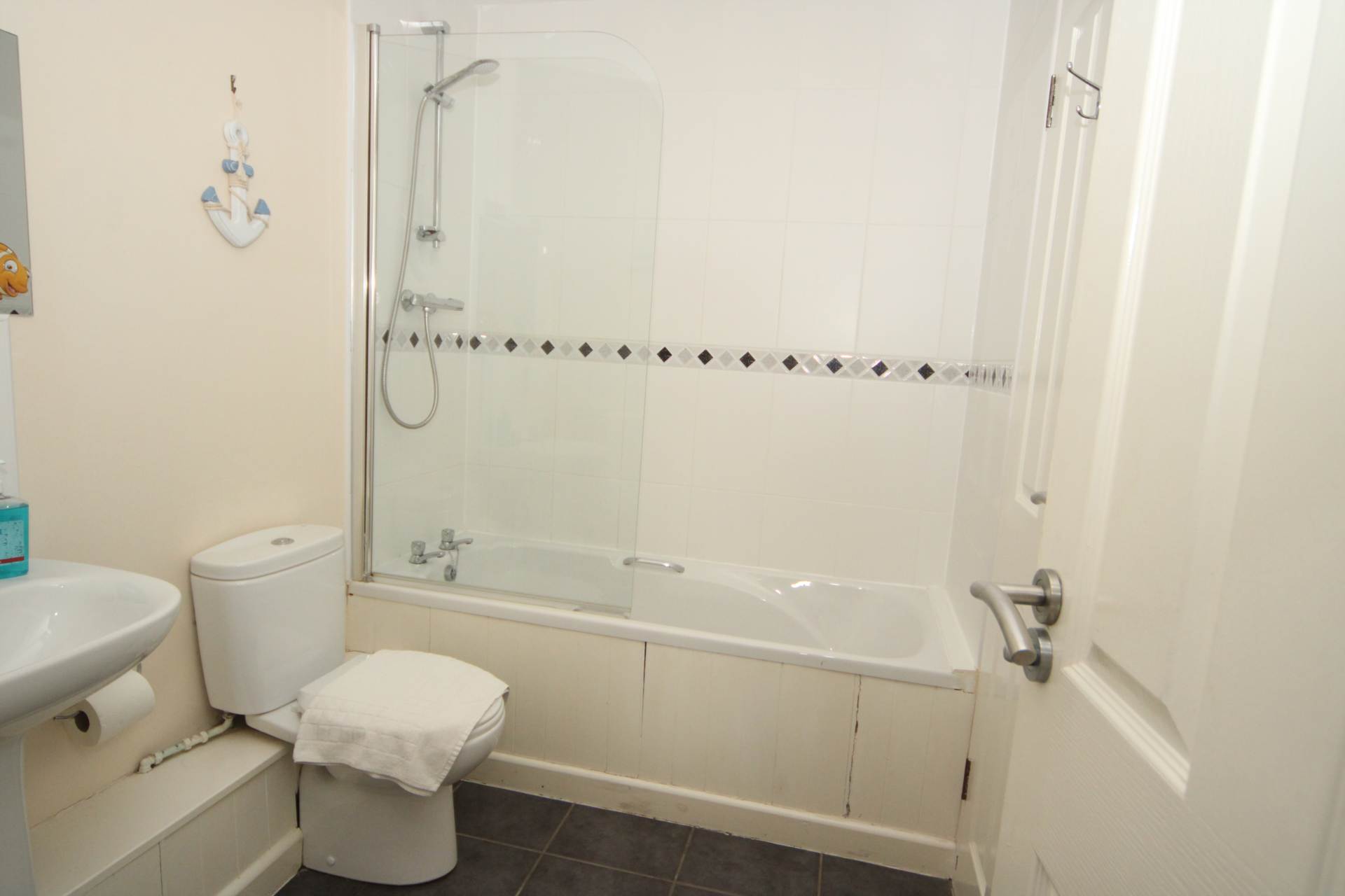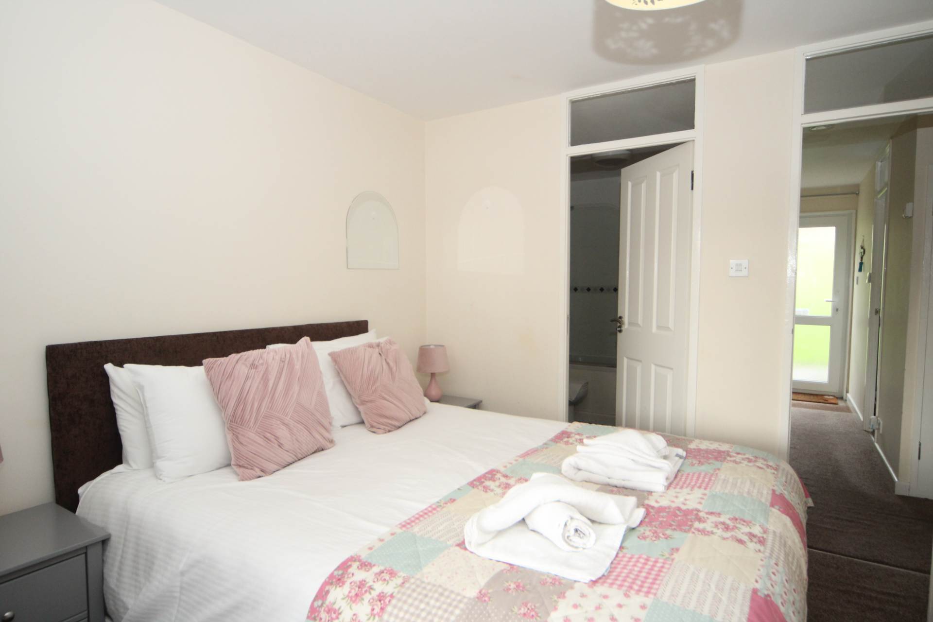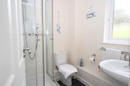 The property is approached by the pathway leading up to the main entrance door which opens out the hallway, which give access to the ground floor accommodation and has stairs rising to the first floor. Two under stairs storage cupboards and radiator. Bedroom one is a double bedroom having built in wardrobes and a door gives access to the ground floor terrace. There is a Jack and Jill bathroom which comes complete with a low level WC, wash hand basin, bath with a bar shower over and a heated towel rail. This room can be accessed via the hallway or bedroom one. Bedroom two is a double bedroom and has a pleasant outlook across the terrace and beyond and has fitted wardrobes. Bedroom three is also a double bedroom and has a wardrobe.