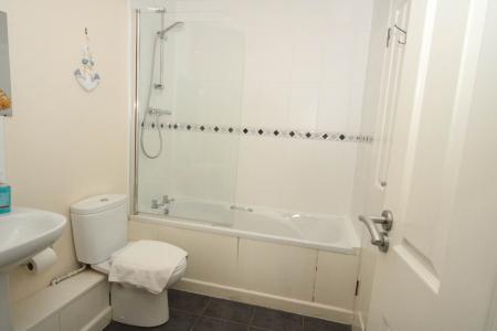 The Shower room which is in addition to the Bathroom comprises of low level WC, wash hand basin, shower cubicle incorporating the electric shower and there is a heated towel rail. On the first floor there is an impressive lounge/dining room which has French doors giving access to the balcony. There is ample room for reception and dining furniture and loft access. An opening then leads to the modern kitchen which includes wall and base units, roll top work surfaces with matching splashbacks. Built in full size dishwasher, washing machine, electric cooker, storage cupboard and under unit space for fridge.