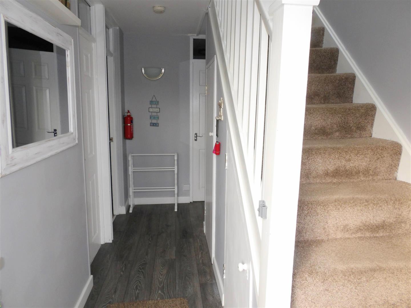 Hallway - Approached via uPVC double glazed front entrance door. Stairs ascending to first floor. Under stair storage cupboard housing electric meter. Additional cupboard for storage. Electric panel heater.