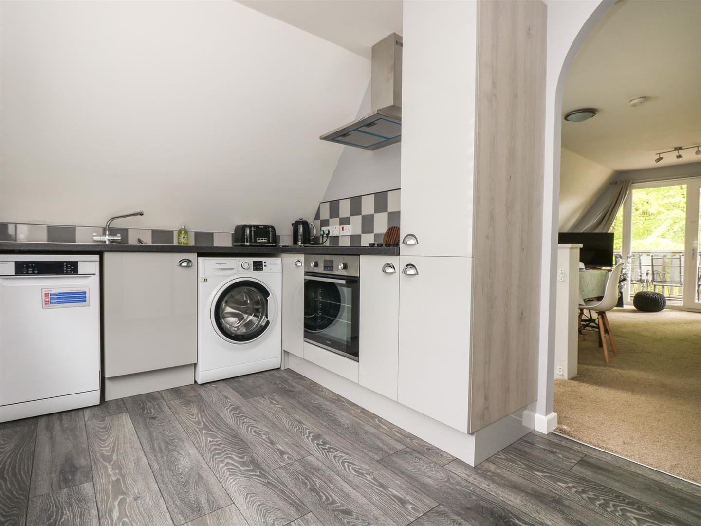 Kitchen - 3.9 2.2 (12'9" 7'2") - UPVC double glazed window. A newly fitted kitchen with a range of base and eye level units with roll edge work surfaces incorporating stainless steel single drainer with mixer tap, electric oven, washing machine, space for fridge and freezer and storage cupboard.