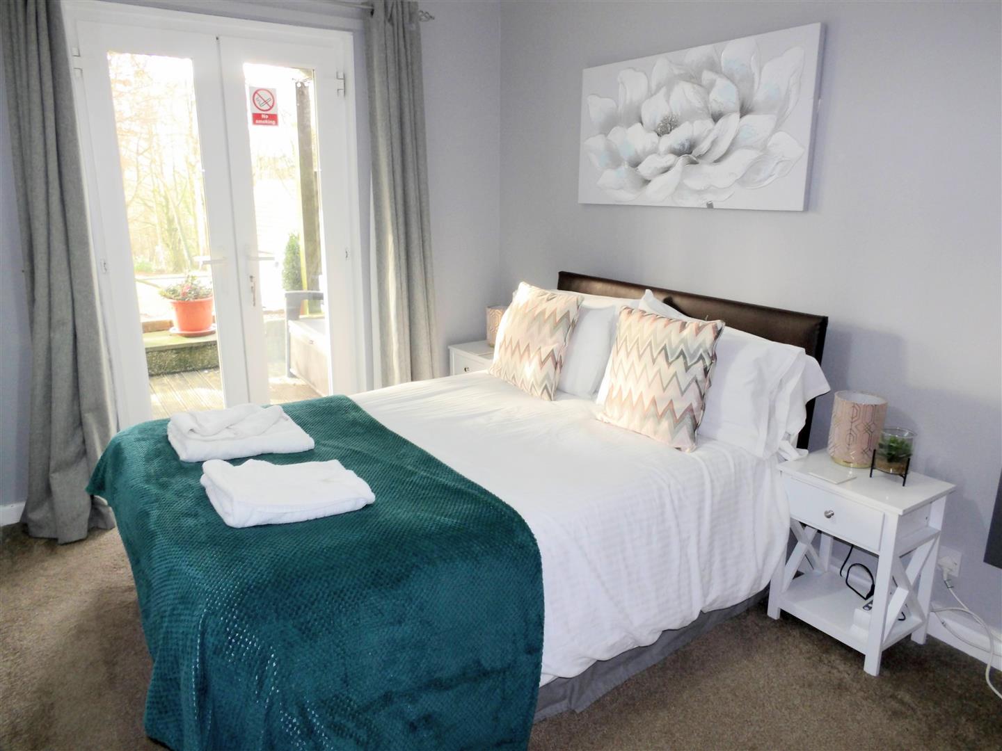 Bedroom - 3.6 2.5 (11'9" 8'2") - UPVC double glazed door leading to patio and hot tub. Double built-in wardrobe., door to Jack and Jill family bathroom, fitted carpet and electric panel heater.