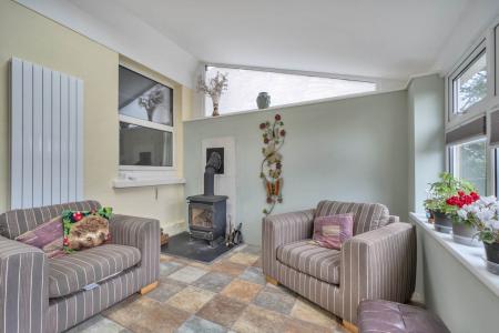 From the hallway an internal door leads into a recessed section with an under stairs storage cupboard and has stairs rising to the first floor.The kitchen/breakfast room has a range of base units, roll top work surfaces and drawer space. There is plumbing for a washing machine, space for a cooker, upright fridge/freezer and a small table and chairs. There is a large window facing to the rear that enjoys views across surrounding and far reaching countryside. The walk in pantry/store has drawer space and work top surface. From the kitchen/breakfast room a door gives access to the family room, which has as a main feature of a multi fuel burner and is certainly the hub of the home. 2 velux windows facing to the rear allow a great deal of light into this room and French doors give access to the rear garden.