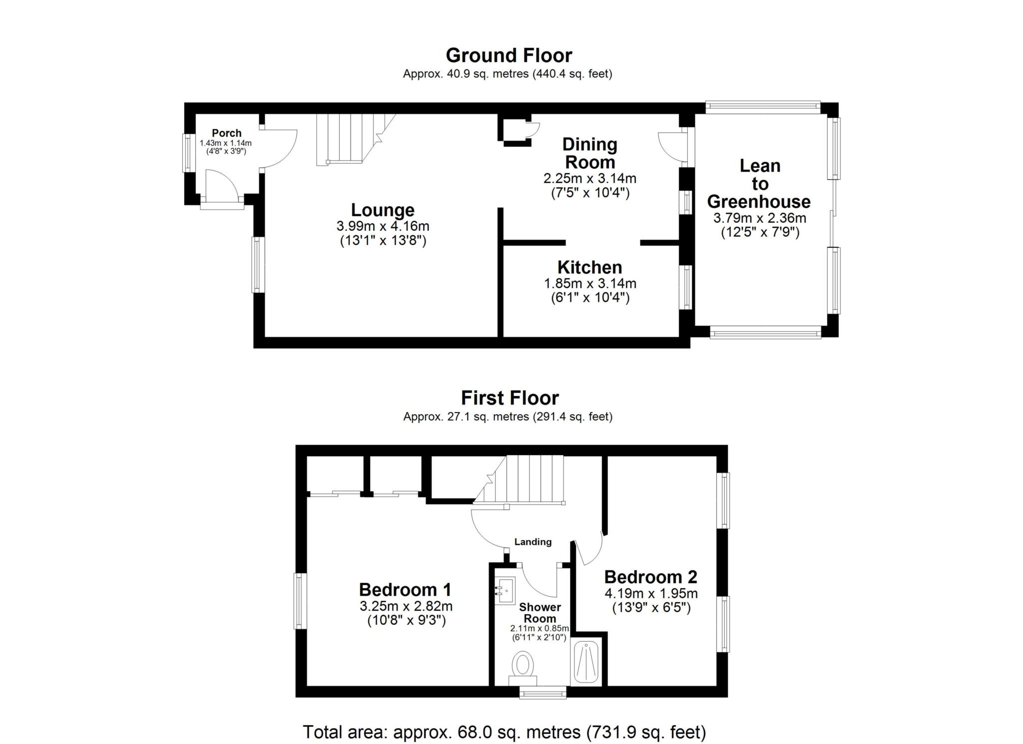 The property is entered via the Porch through a recently replaced door. The Lounge has a feature fireplace complete with a living flame electric fire with ornamental surround and mantel and faces to the front. Stairs rise to the first floor. The dining room obviously has space for a table and chairs and has a useful under stairs storage cupboard. Door then gives access to the lean to greenhouse which faces to the rear overlooking the garden. The Kitchen follows on and is fitted with a range of base units, roll top work surfaces, 4 ring electric hob and faces to the rear again overlooking the garden.