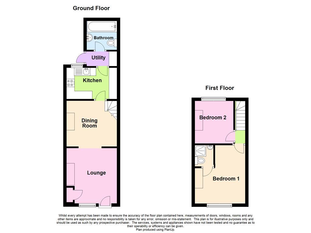 This charming mid - terrace traditional cottage, which over a period of time has been fully refurbished to a high and tasteful standard. The accommodation comprises a large character sitting/dining room with two exposed fireplaces, fitted kitchen with integral oven and hob, rear utility lobby and bathroom on the ground floor, with small landing and two bedrooms (master en suite shower room) on the first floor. The windows are uPVC double glazed, with attractive wood grain frames to the front elevation, and white frames to the rear. The accommodation is centrally heated by mains gas. Outside, there is a small and enclosed utility yard at the rear, together with a further utility space offering a small seating area or position for garden shed. Internal viewing is highly recommended. NO ONWARD CHAIN.