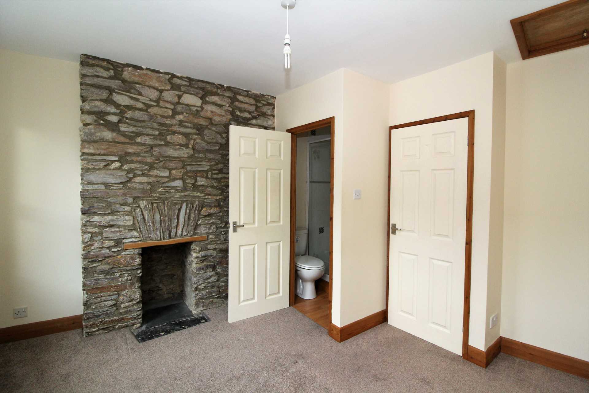 Twin front aspect uPVC double glazed windows. Exposed stone full height feature fireplace with recess. Loft hatch giving access into roof space, ample power points, single panelled radiator and fitted carpet.