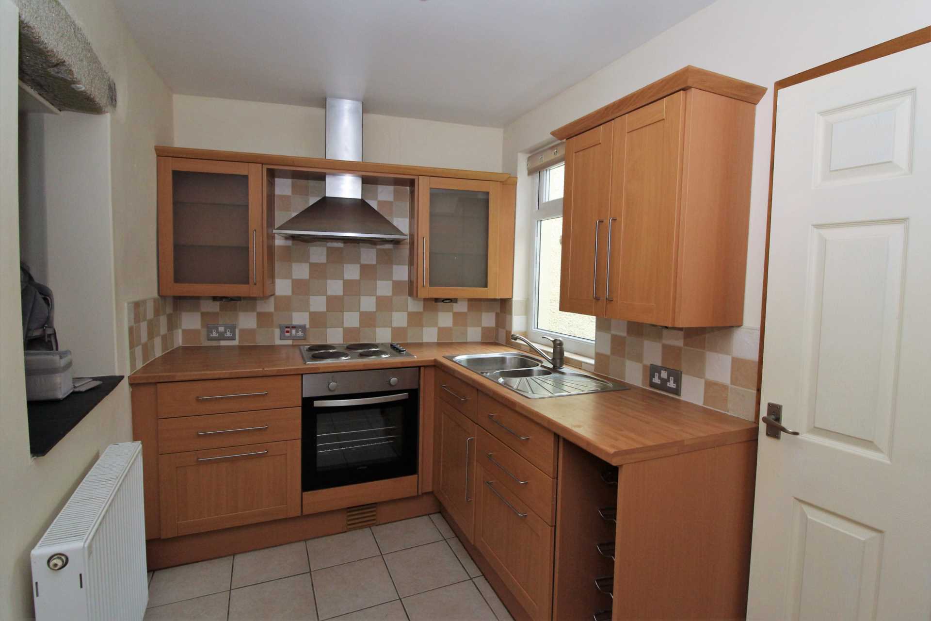 uPVC panelled and glazed door gives access out into the side and rear courtyard garden. Comprehensive range of base and wall units with roll edge work surfaces with tiled splash backs. Space and plumbing beneath for washing machine with additional space over for tumble dryer and ceramic floor tiling.