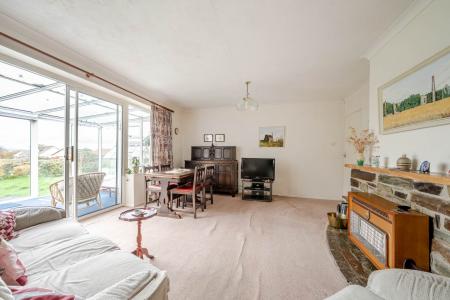 uPVC Entrance door gives access into the Hallway from which doors lead off to the downstairs accommodation. A generous sized Lounge/ Dining Room with a rear aspect looks out over the garden. There is a natural stone feature fireplace housing the Gas fire and ample room to accommodate a range of reception furniture. Patio doors provide access into the Garden Room, which enjoys a sunny aspect and has ample room for seating. Further patio doors give access into the rear garden. The shaped hallway has the benefit of a full height built in cupboard providing storage and access can also be gained into the roof space. The Kitchen would benefit from some updating but is serviceable. This enjoys the front aspect outlook and is fitted with a range of wall and base units, plumbing for washing machine, space for cooker and extractor fan above. There is a small breakfast bar/ seating area and a door leading out into a covered walkway. The main Bedroom is a double room situated at the rear also enjoying the garden and countryside views beyond. Bedroom 3 is situated at the front of the property and is a good sized double room. Bedroom 2 has a side elevation view and is a spacious single bedroom. The front aspect Shower room was formerly a Bathroom, so if this is preferred a bath could be reinstated. There is a pedestal wash hand basin and a corner walk in shower with a seating area to the side. The WC is separate, but this room could be opened up to become part of the main bathroom if desired. The Lean to walkway is covered with a polycarbonate roof, it is fully enclosed with uPVC windows and doors with fitted carpet.