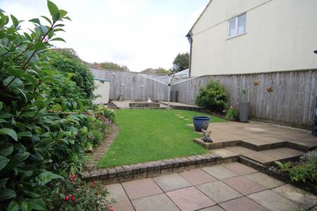 The attractive rear garden has a patio area suitable for alfresco dining, is enclosed with garden fencing and has flower and shrub borders. Pebble finished areas and a storage shed.