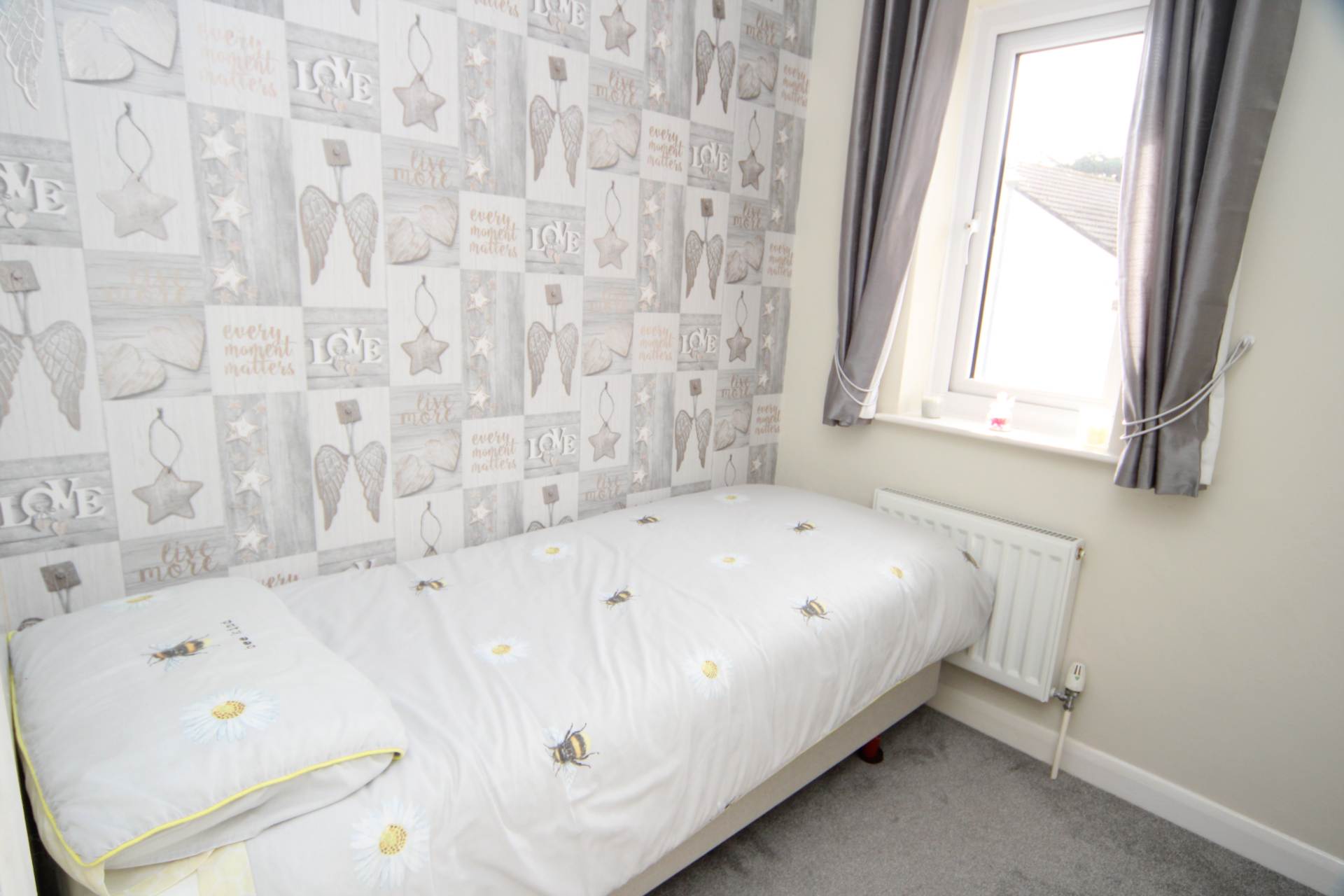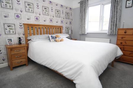 Outside to the front there is a lawned garden, flower beds and pebble finished areas. There is a driveway for one vehicle which leads up to the garage.