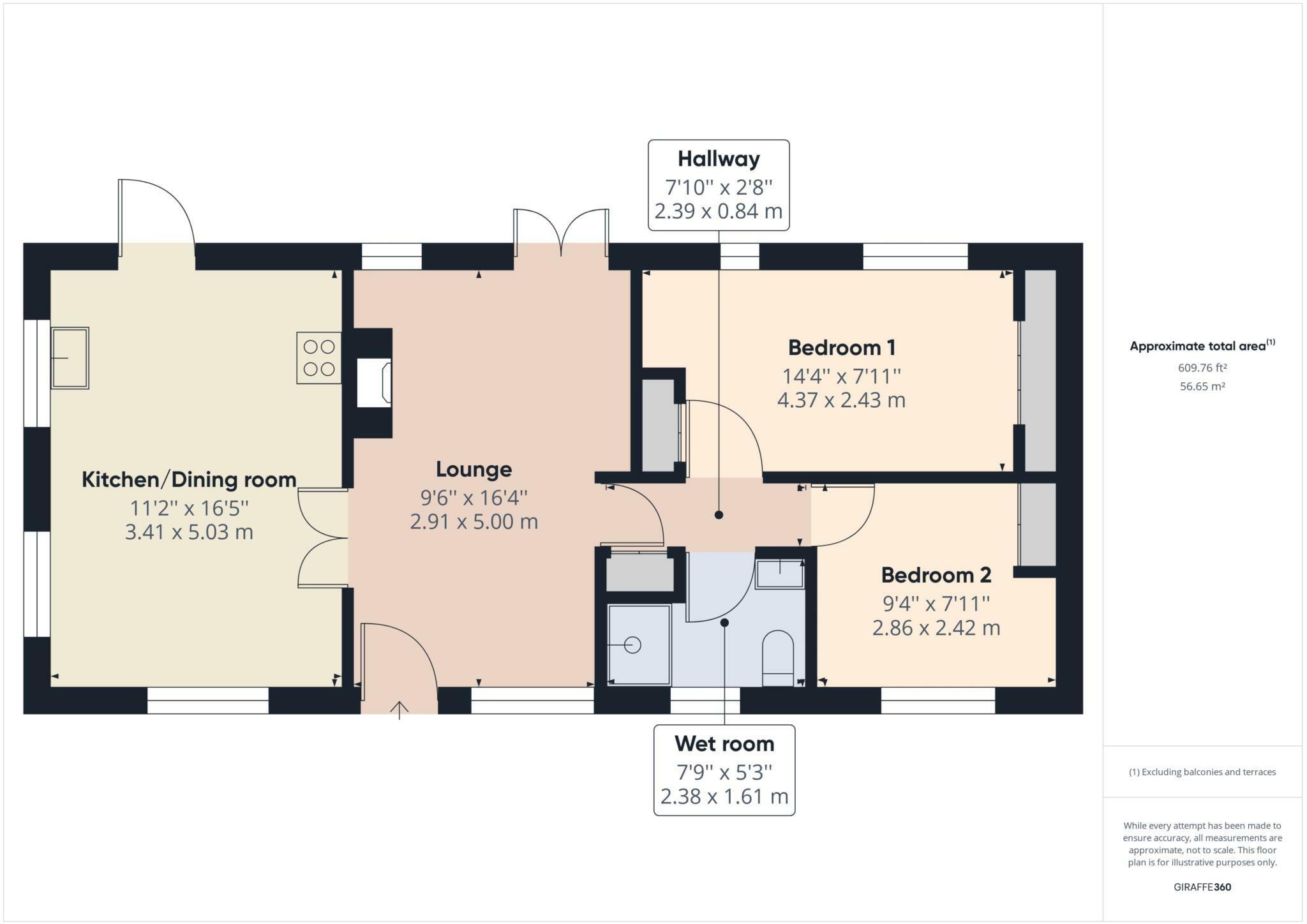 You first enter the property in to the Lounge which is a nice size reception room with French doors giving access to the rear garden. Features include beams and a fireplace including a recess with tiled hearth and mantle over. Double doors with glass open to the light and spacious Kitchen/dining room which is fitted with a range of wall and base units, roll top work surfaces, 4 ring gas Hob with a canopy above incorporating the extractor. There is drawer space and space for upright fridge/freezer. Plumbing and under unit space for washing machine and there are lovely views from the windows across to fields. Door gives access to the outside seating area. Area suitable for dining room table and chairs and further reception furniture if required. Inner hall with cupboard housing the Worcester central heating and hot water boiler and access through to the bedrooms and wet room. Bedroom 1 is a double bedroom fitted with a range of wardrobes. Bedroom 2 also has a wardrobe and is an ideal guest room or even a study. The Wet room has a suite comprising WC, wash hand basin, Mira wall mounted electric shower and soak away. Shaver light and point. The property has the benefit of Calor Gas heating and Double Glazing.
