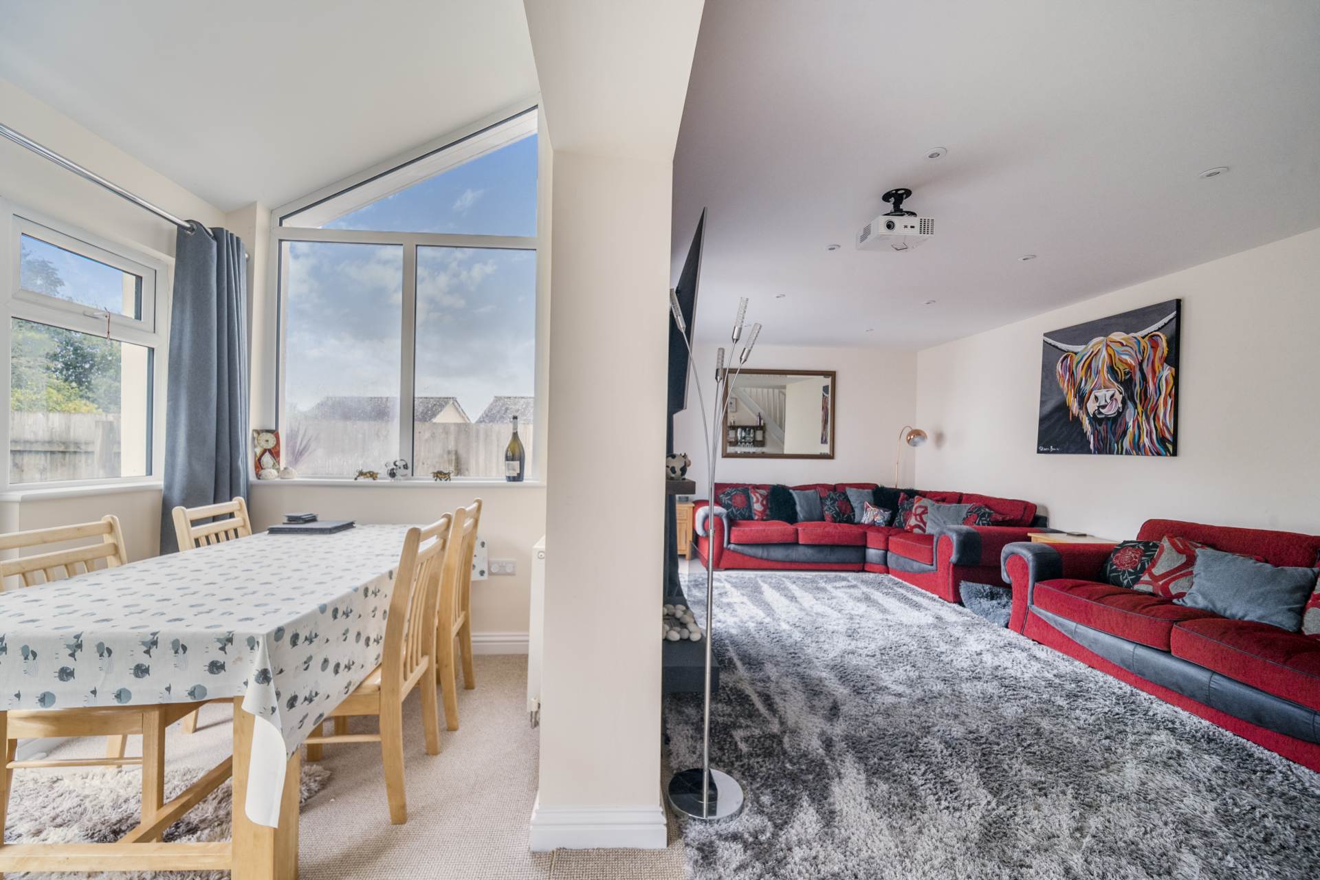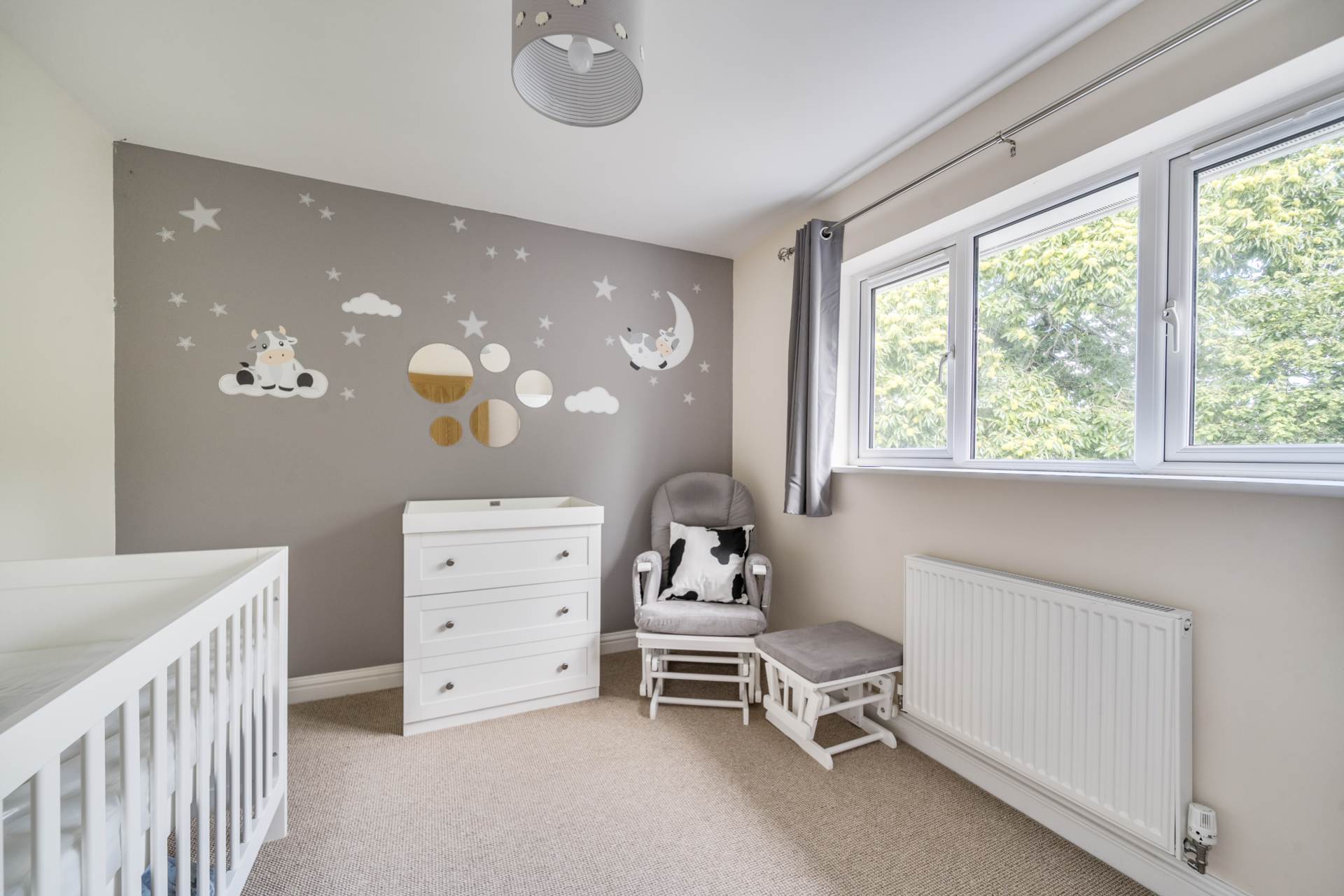 The hallway looks through to the main reception room, the Lounge, which is a light and spacious room having a Bioethanol fire finished in pebble and glass. Patio doors give access to the rear garden which is a very social space. The Dining room then follows which has sliding doors giving access to the rear garden. There is also a feature shaped window and ample space for dining room table and chairs. There is an additional room on the ground floor which can be used for individual preferences such as a family room/bedroom five. The Store room provides space for such items as garden utensils and has direct access to the driveway.