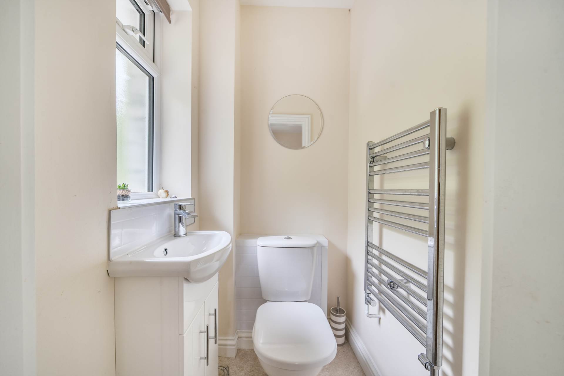 The property is approached by steps leading up to the front Entrance door. This opens up to the spacious and welcoming Hallway where stairs rise to the first floor and there is a useful downstairs Cloakroom. The Kitchen is fitted with a range of modern wall and base units, wood effect worktop surfaces with matching upstands, There are pan drawers, drawers space, a four ring electric ceramic hob with a stainless steel canopy above, integrated dishwasher and fridge freezer, plus space and plumbing for an under unit washing machine.