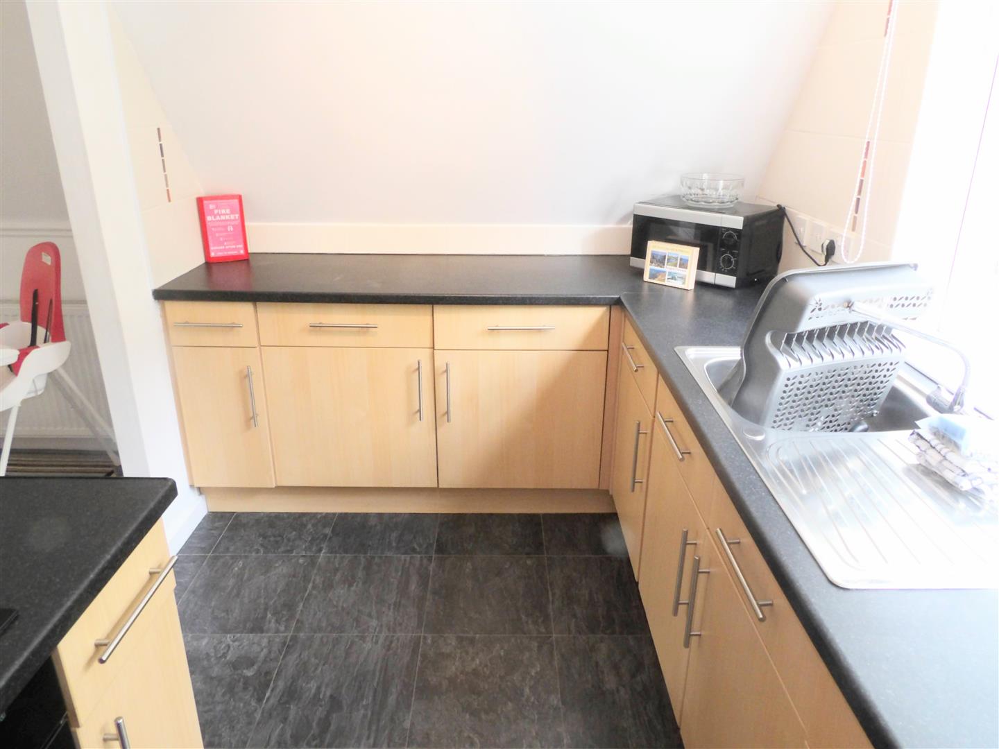 Kitchen - UPVC double glazed window. Fitted range of base and eye level cabinets with roll edge work top surfaces incorporating stainless steel single drainer with mixer tap, space for electric oven, further work tops with space for white goods.