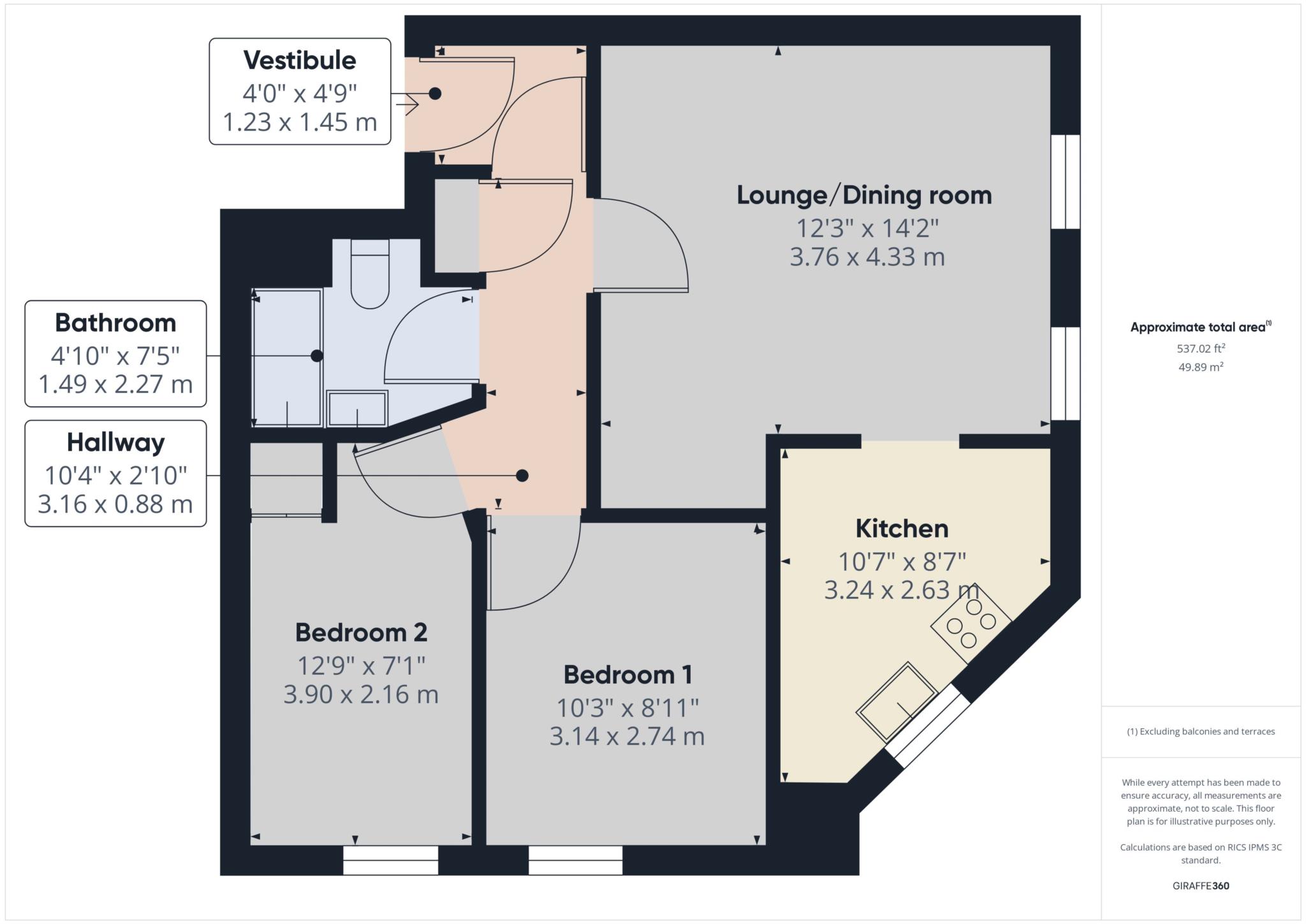 Vestibule:- - 4'0" (1.22m) x 4'9" (1.45m)