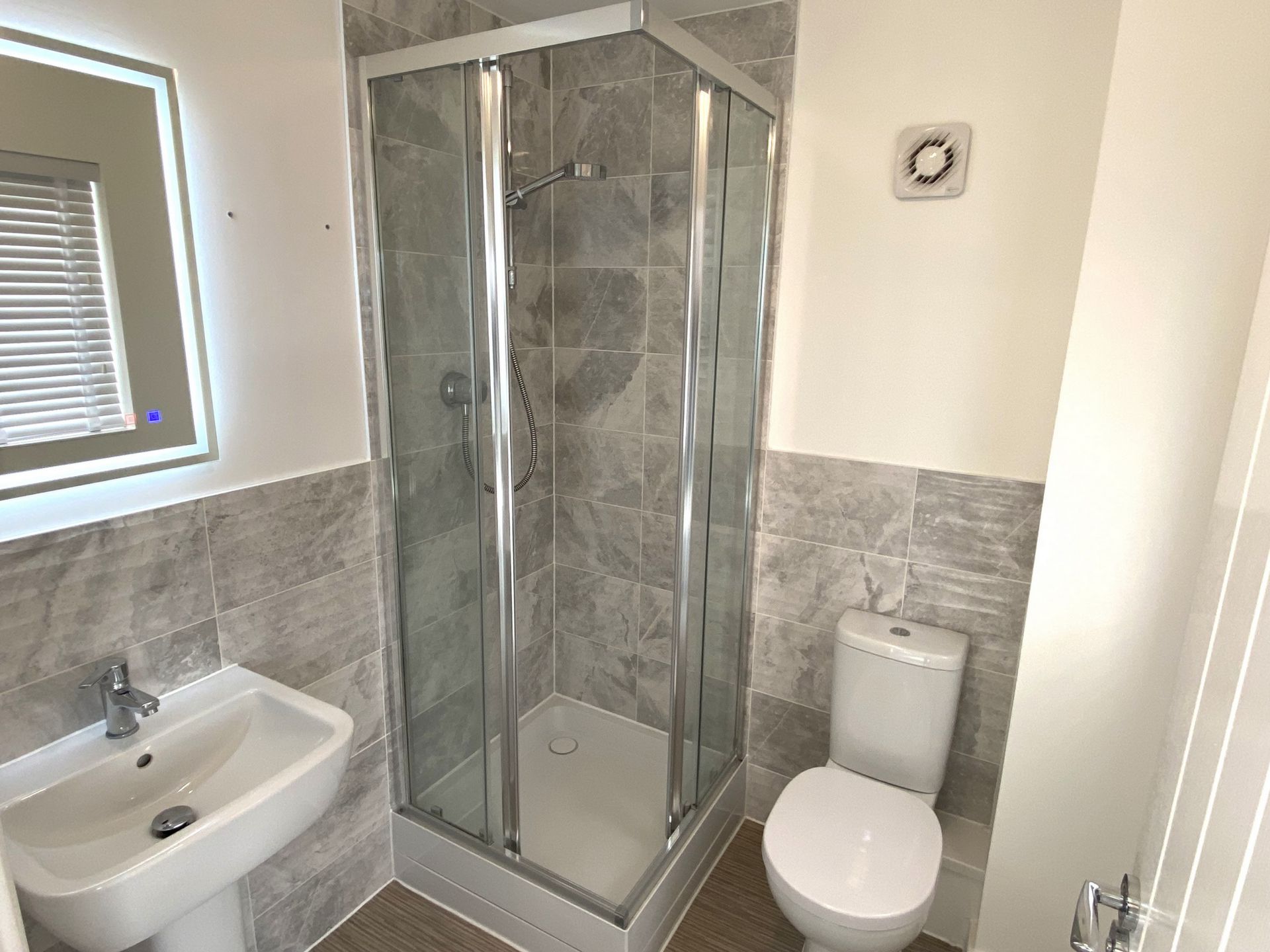 First Floor Features: Master Bedroom Suite: A luxurious retreat, complete with bespoke fitted wardrobes with mirrored doors, stunning views, and a private en suite featuring a stylish walk-in shower and modern vanity.Two Further Bedrooms: