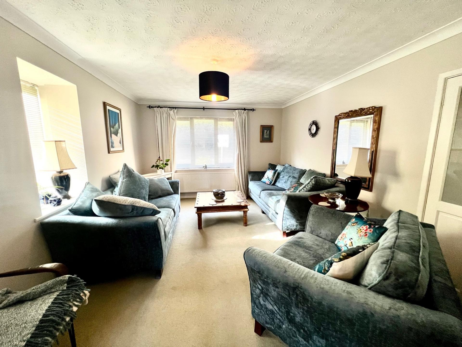 Upvc double glazed dual aspect windows to front and side, ceiling coving, radiator, double doors to dining room.