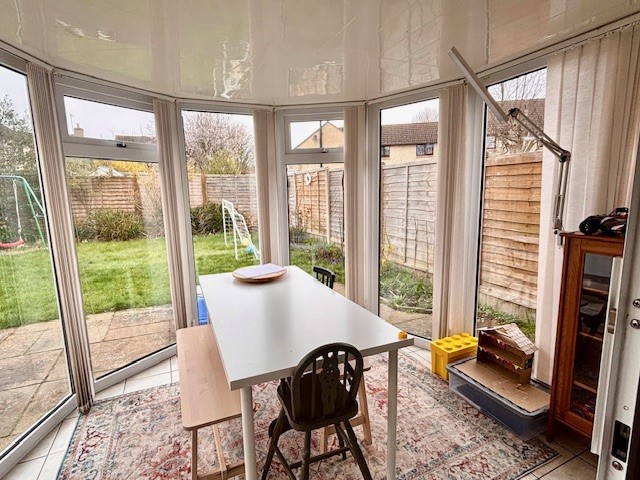 Upvc construction, French patio doors out to the garden, tiled flooring.