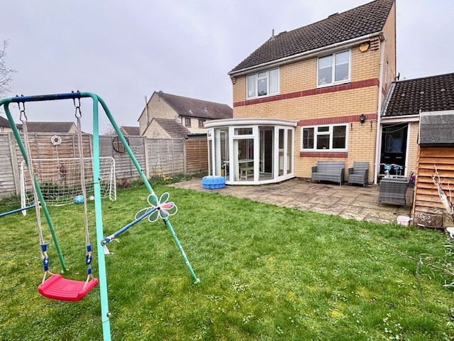 CHAIN FREE! Located within a small cul-de-sac on the popular Silverglades development to the South side of town this well presented modern detached house offers light and spacious family living. Included is a refitted kitchen, separate dining room with a conservatory off which overlooks the rear garden, There is a good size living room, a convenient utility room and the guest cloakroom completes the ground floor. To the first floor there are three bedrooms, with the principal bedroom complemented by an en-suite shower room and the remaining rooms share a well-appointed family bathroom. Outside, the enclosed south facing rear garden offers a wonderful outdoor space, perfect for relaxing and entertaining and a single garage provides secure storage and parking with ample driveway parking to the front of the property.