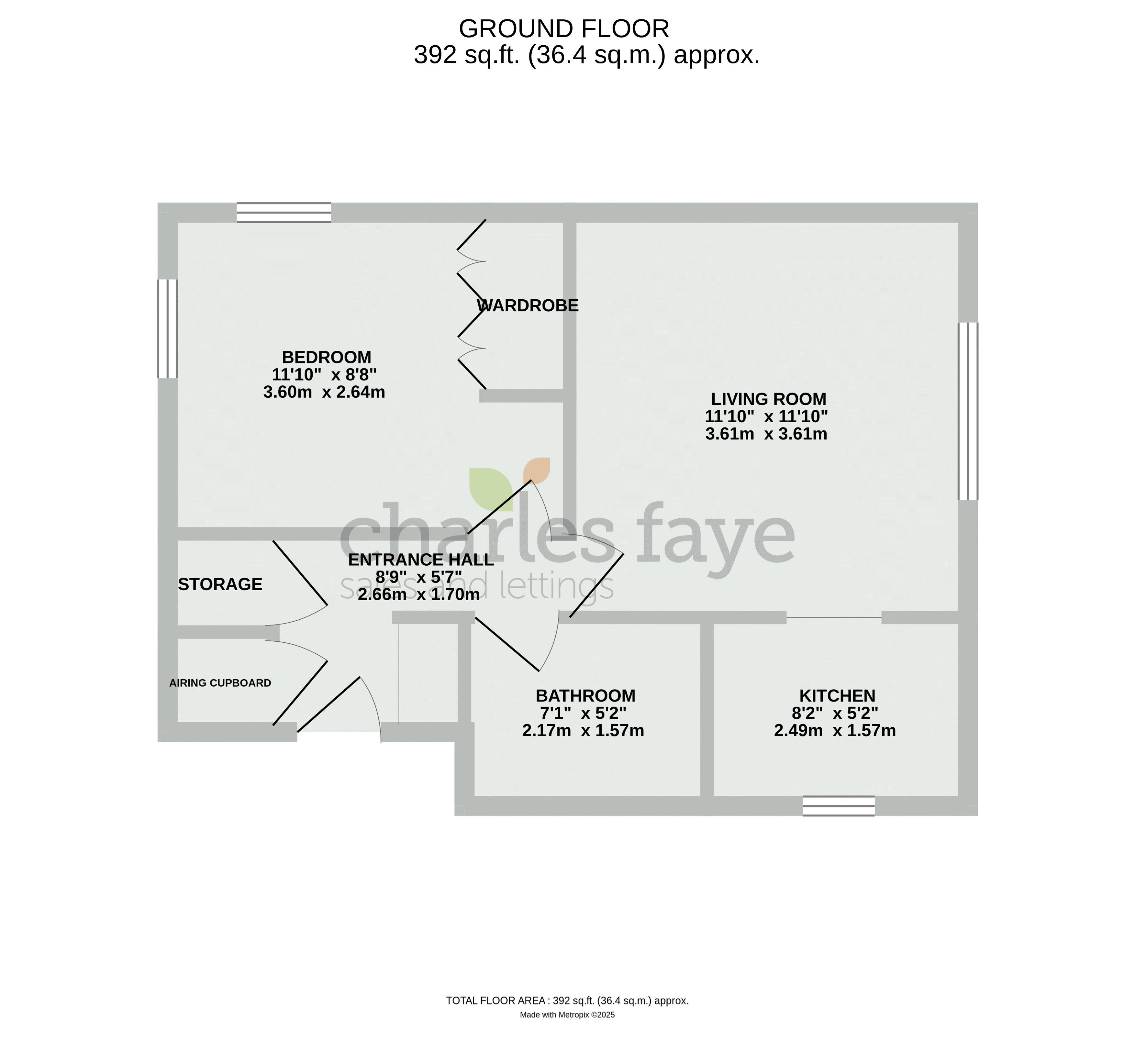 11' 10'' x 8' 8'' (3.60m x 2.64m)
