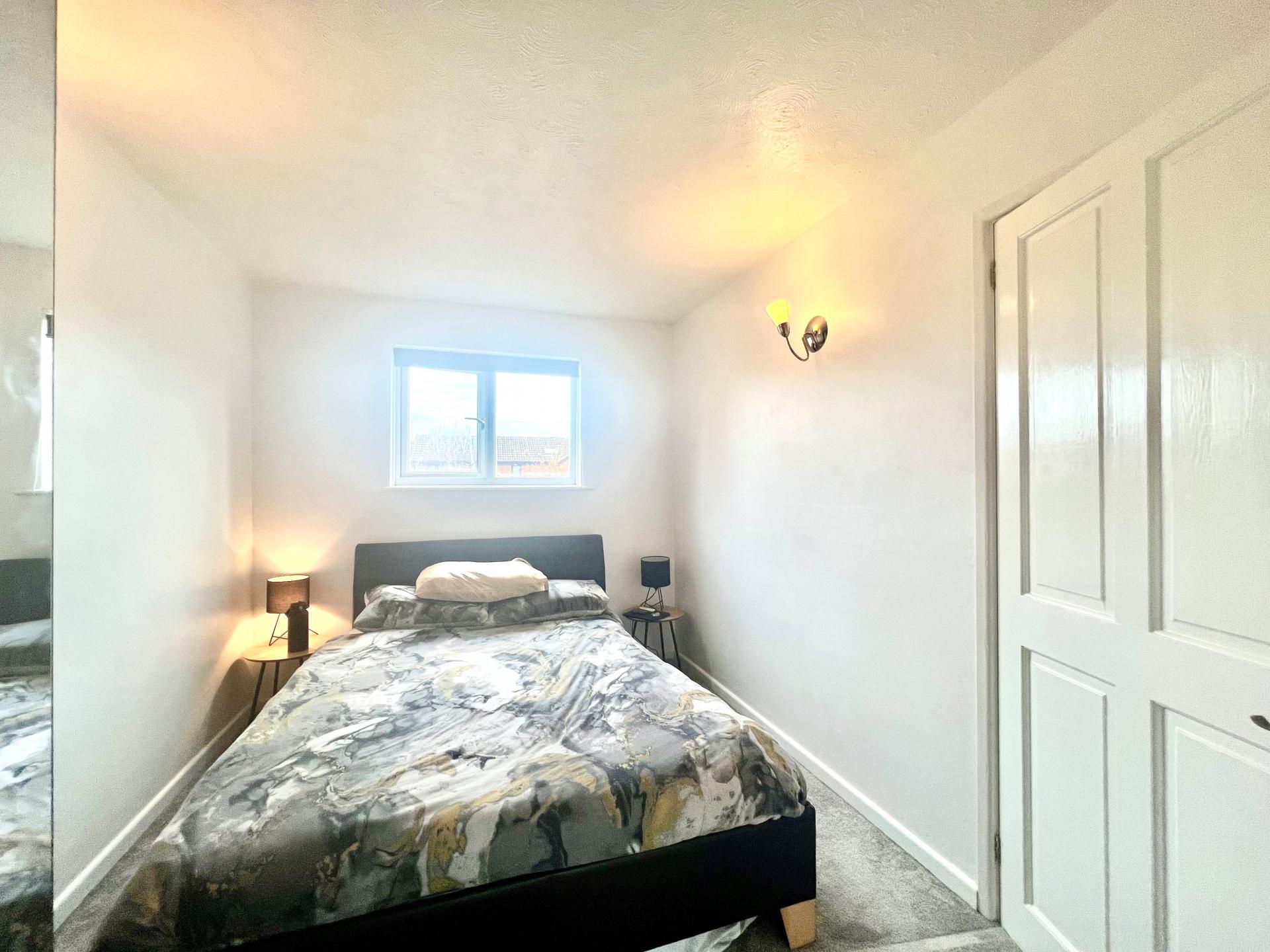 CHAIN FREE This lovely apartment boasts a modern feel, with it`s kitchen with a good size breakfast bar for dining overlooking the communal gardens. The open-plan living/dining area is bright and airy, offering a welcoming atmosphere. The spacious double bedroom features an en-suite bathroom room and a large cupboard providing ample storage. Additionally, the property includes a large under-stairs cupboard for extra convenience. The property comes with allocated parking to the front and communal gardens.