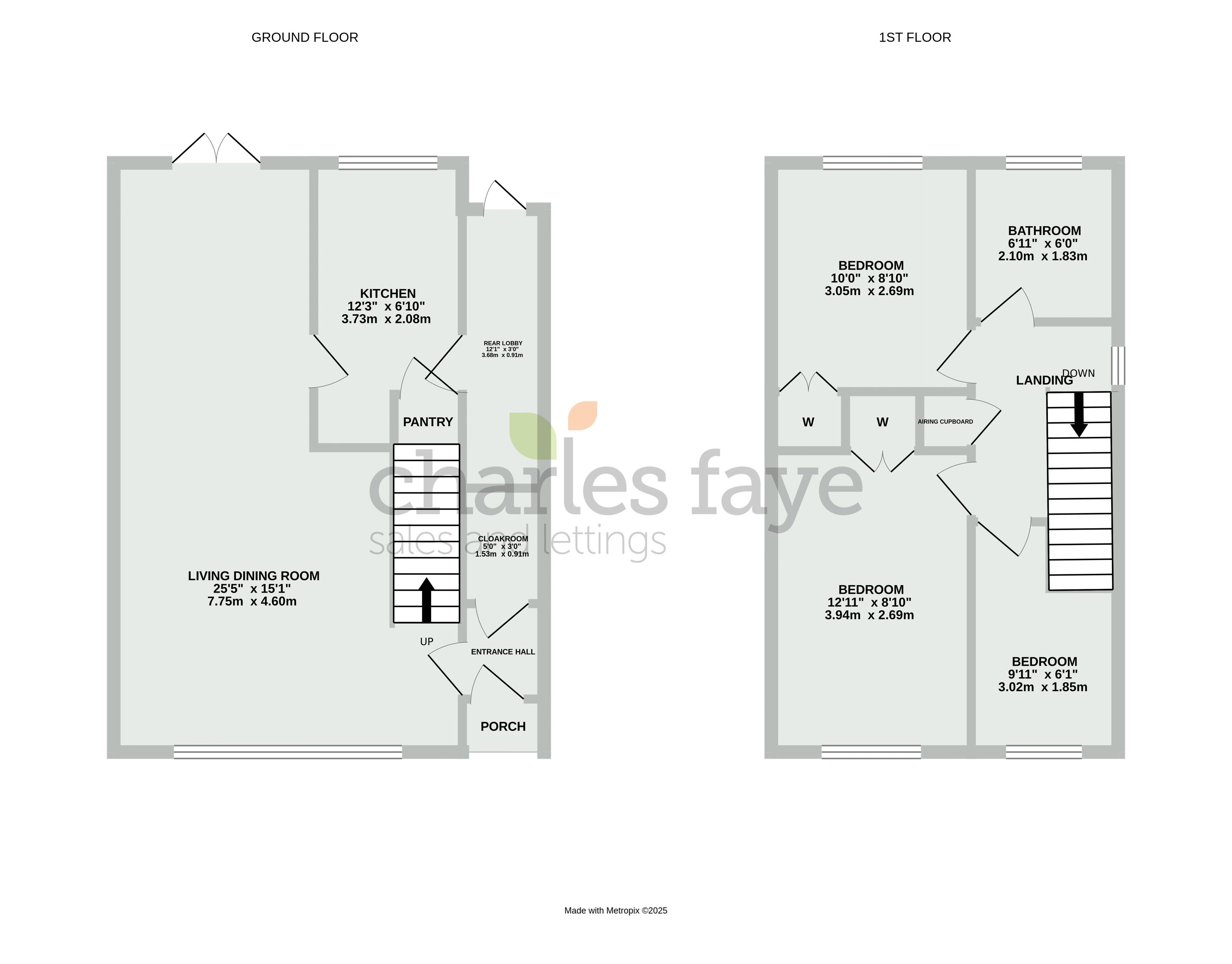 12' 3'' x 6' 10'' (3.73m x 2.08m)