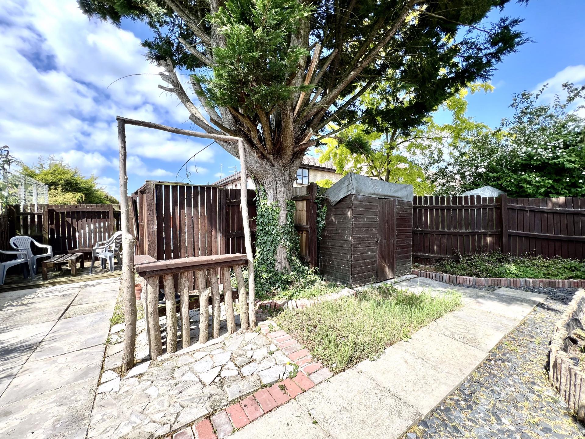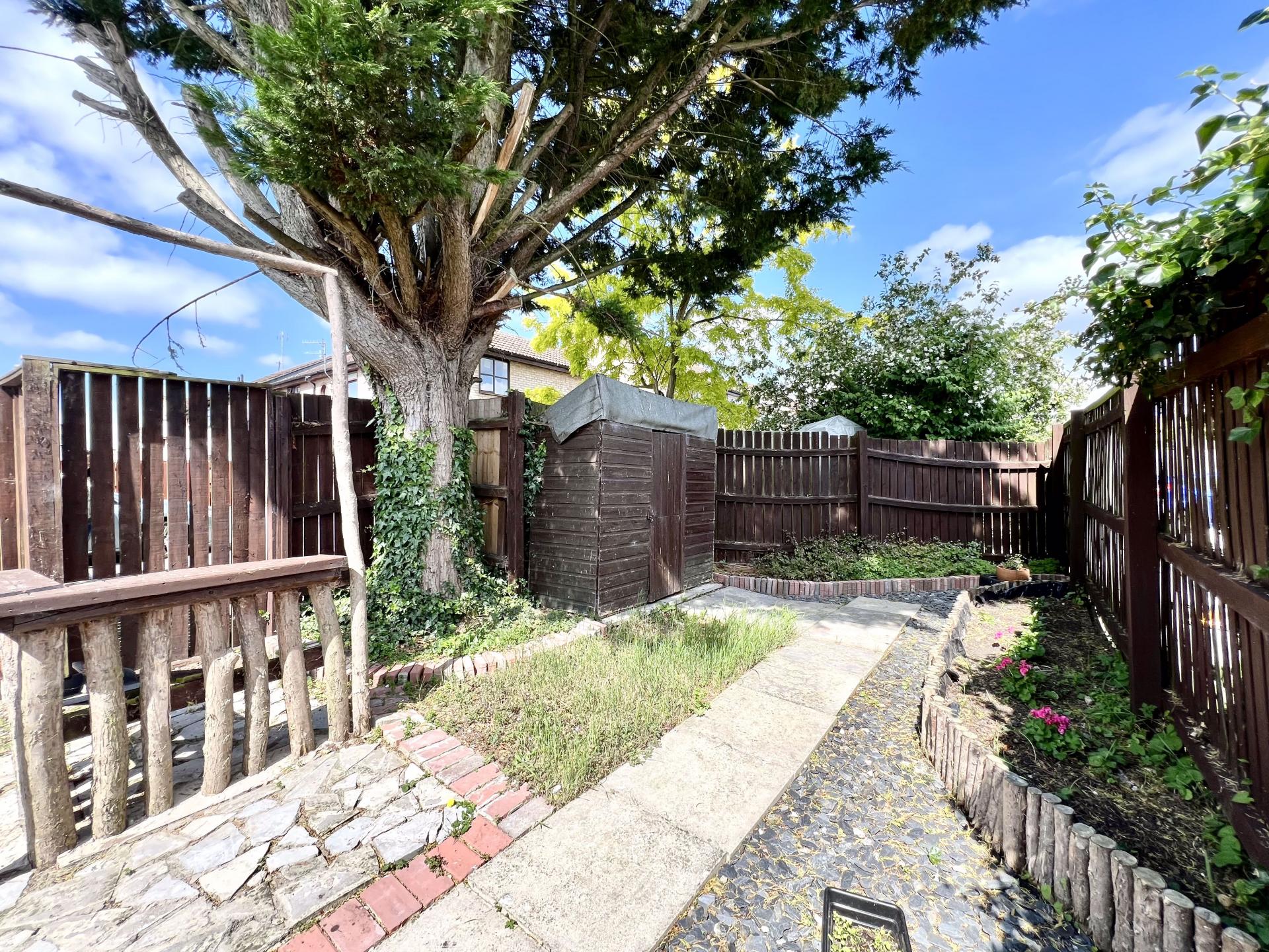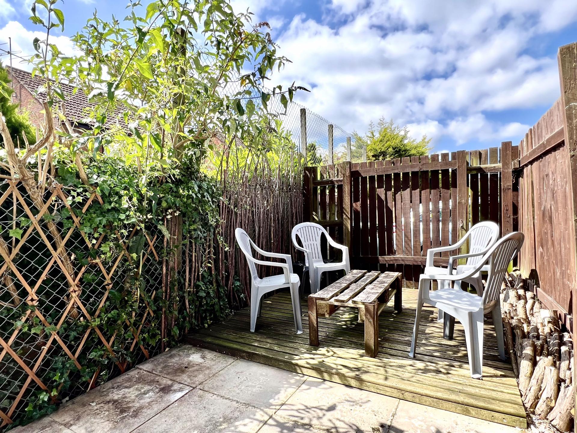 The property has a great garden space which is private though not adjacent to the property and offers the opportunity to use as a allotment or garden. It is currently laid with a few patio slabs and decking with trees, shrubs and flower borders and has a shed.