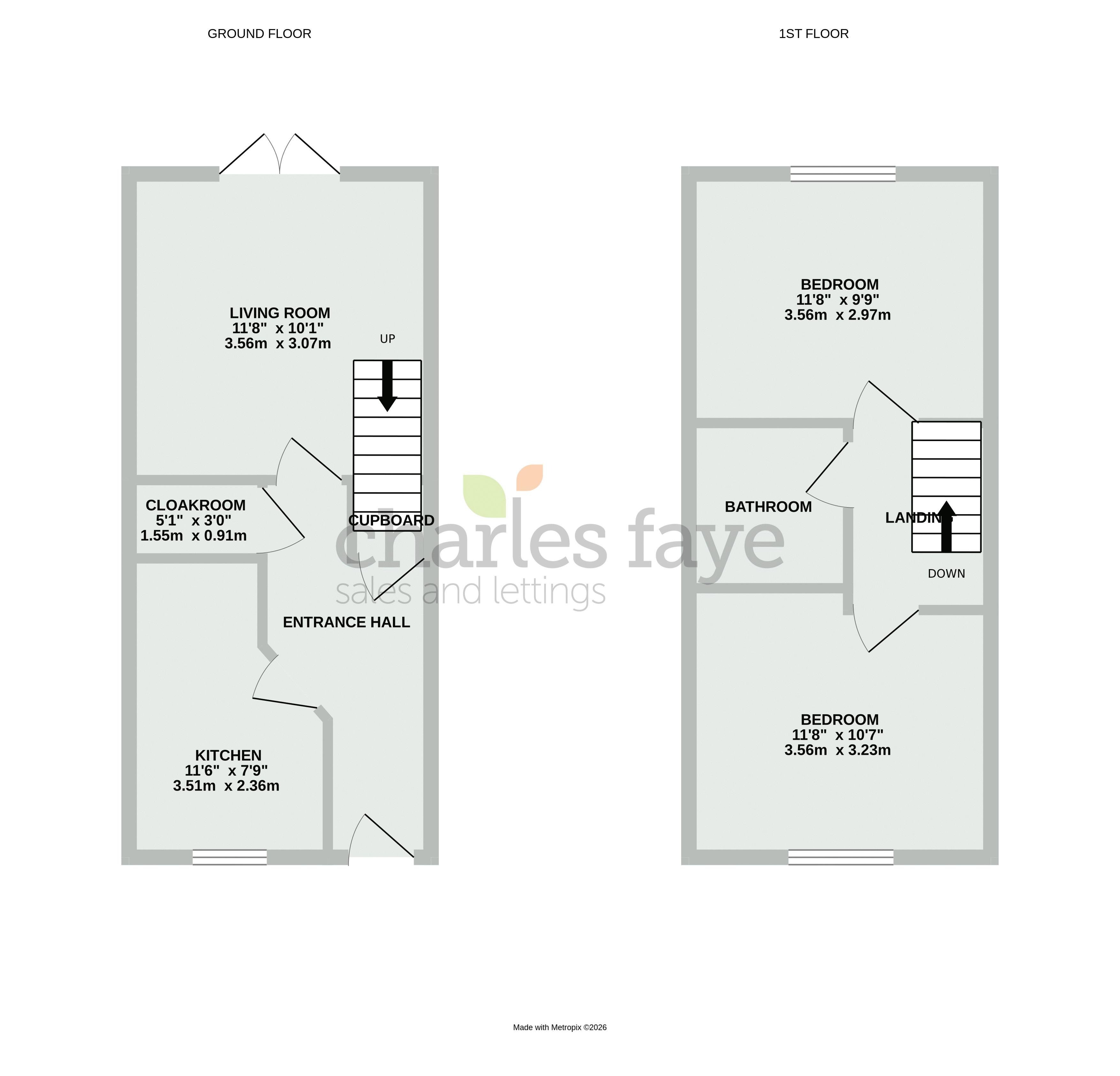 11' 8'' x 9' 9'' (3.55m x 2.97m)