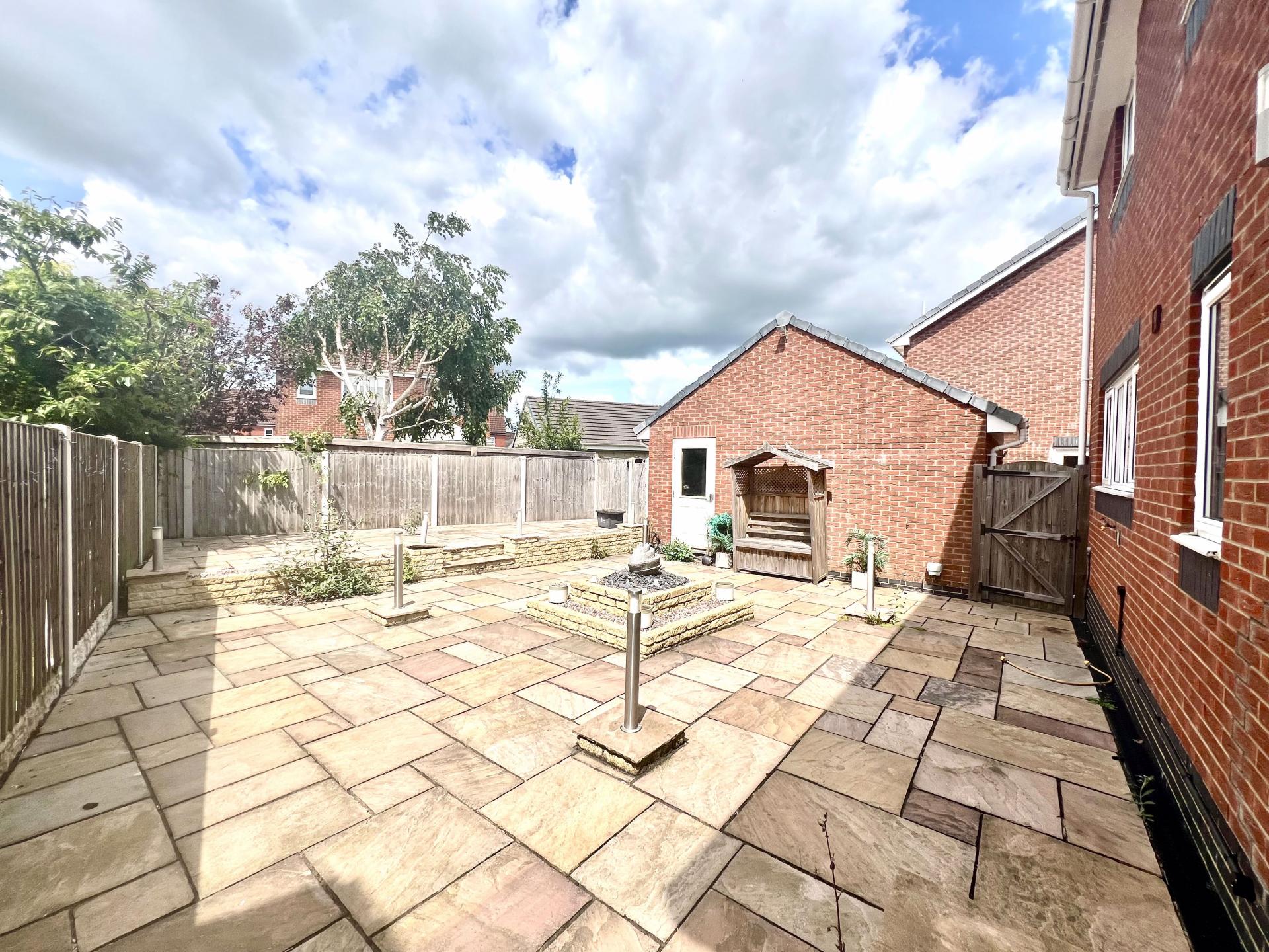 Fully enclose with gated access to the driveway and personal door to the double garage. The garden is completely paved for ease and low maintenance.
