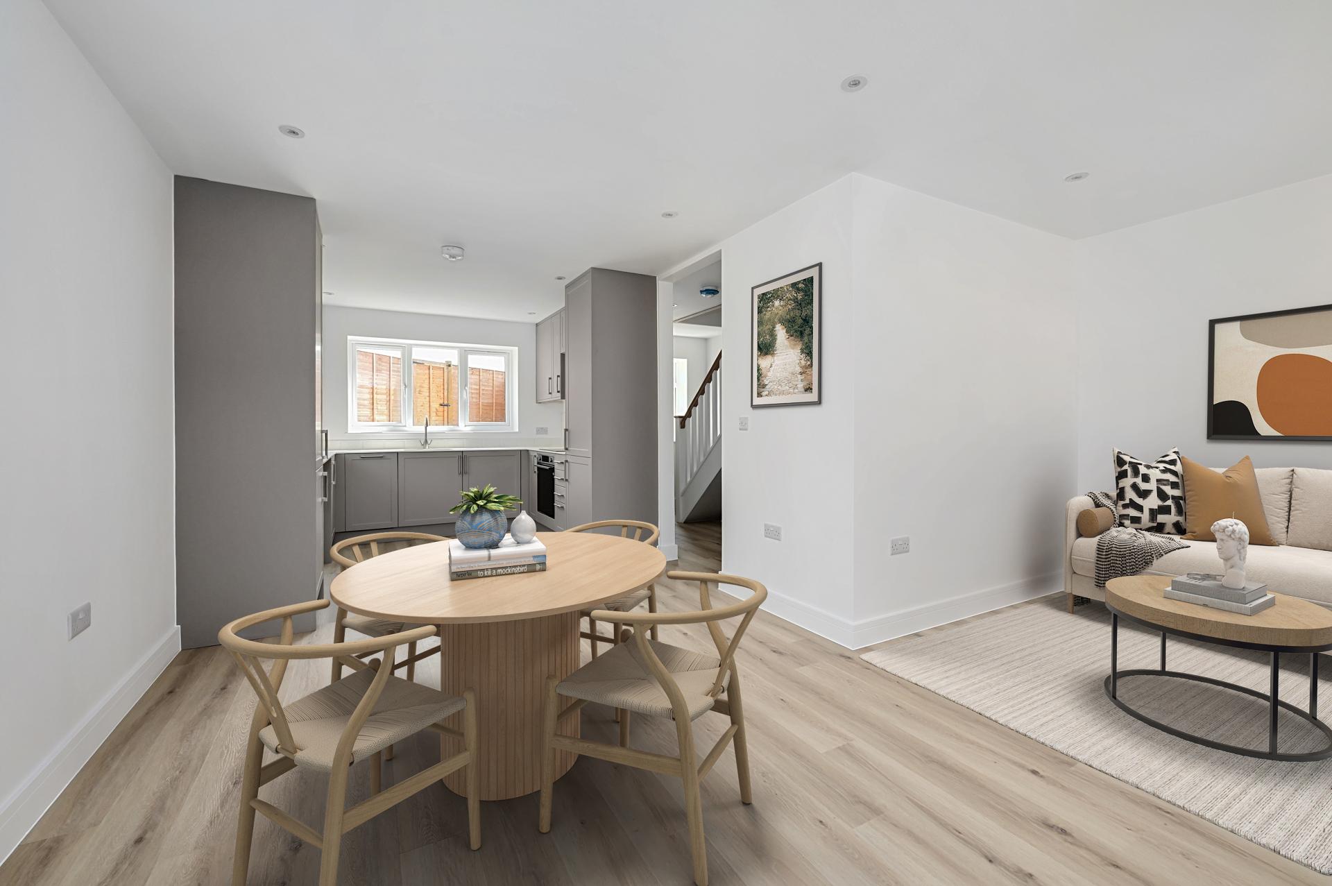 - Open plan living/dining room to kitchen
