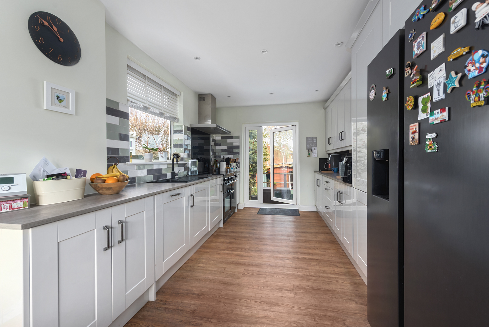 Upstairs, the property boasts three well-proportioned bedrooms along with a family bathroom finished in a contemporary style. Each room benefits from good natural light and pleasant outlooks over the surrounding residential area.