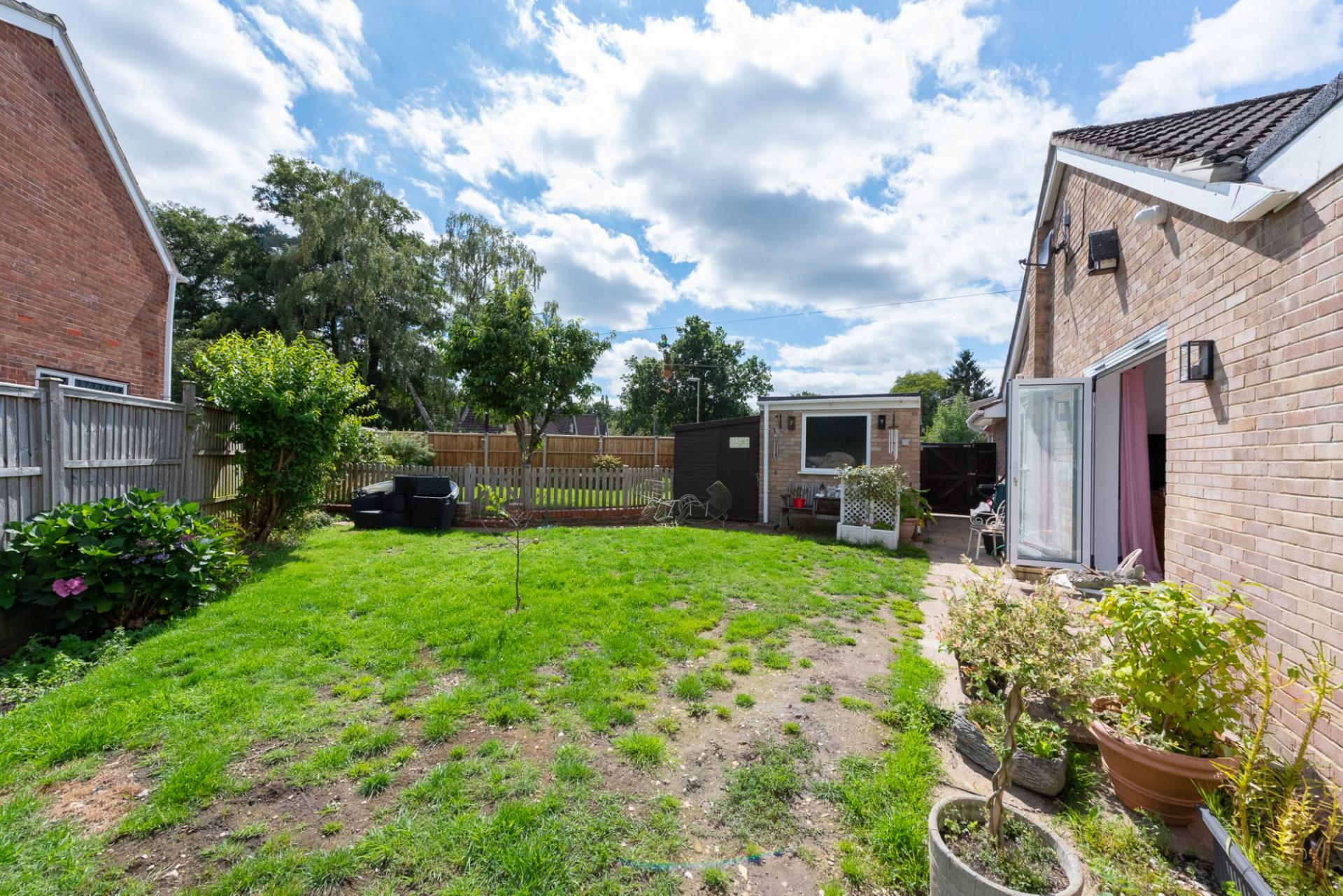 A beautifully modernised bungalow which benefits from superb open plan living space with a spacious modern Living /kitchen/dining room as well as two bedrooms and a modern shower room. The property also benefits from an attractive wrap around garden as well as a garage and driveway parking to the front of the property. It is conveniently located for Blackwater and the local shops, amenities and railway station.