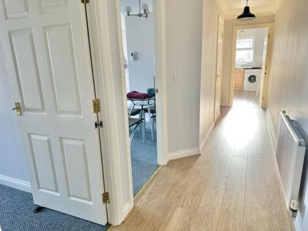 The accommodation comprises an open plan living/dining room with a Juliet balcony, two double bedrooms with a en sutie shower room to the master bedroom and a fitted kitchen with a matching range of eye and low level units, an integrated fridge/freezer & oven with gas hob above.