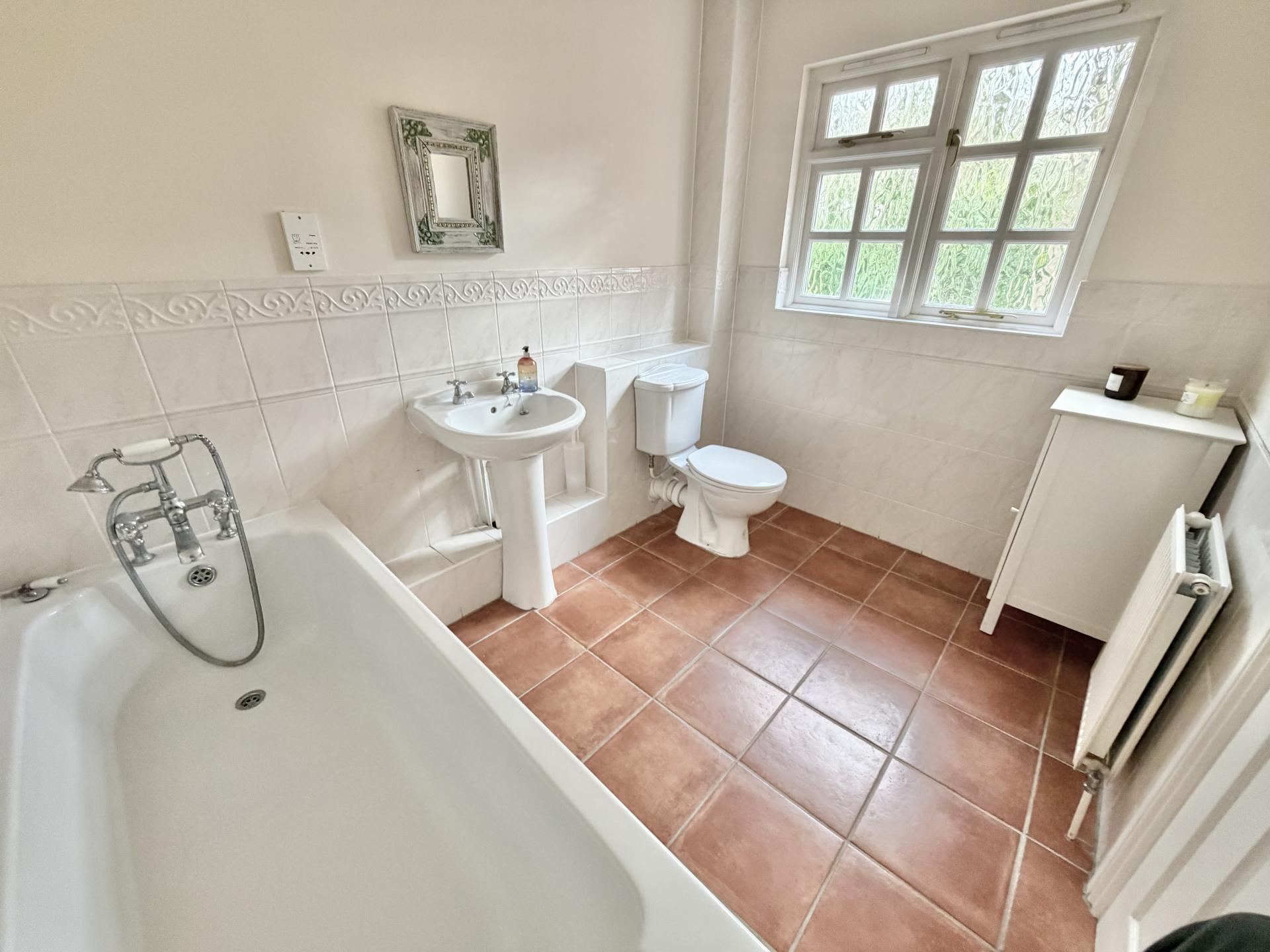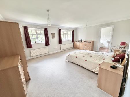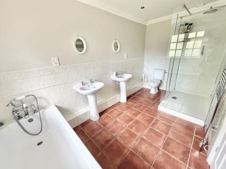 Upstairs, a spacious landing leads to five generously sized double bedrooms, providing outstanding accommodation for growing families. The superb principal bedroom benefits from a luxurious five-piece en-suite bathroom, complete with a double shower cubicle, panel enclosed bath, his and hers basins and WC. The guest bedroom also enjoys its own en-suite bathroom, in addition to the well-appointed family bathroom.