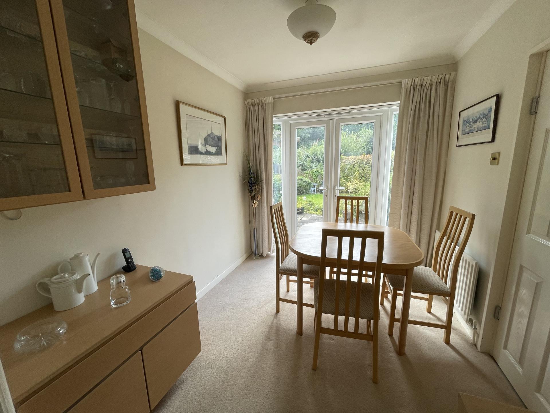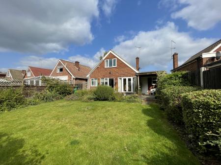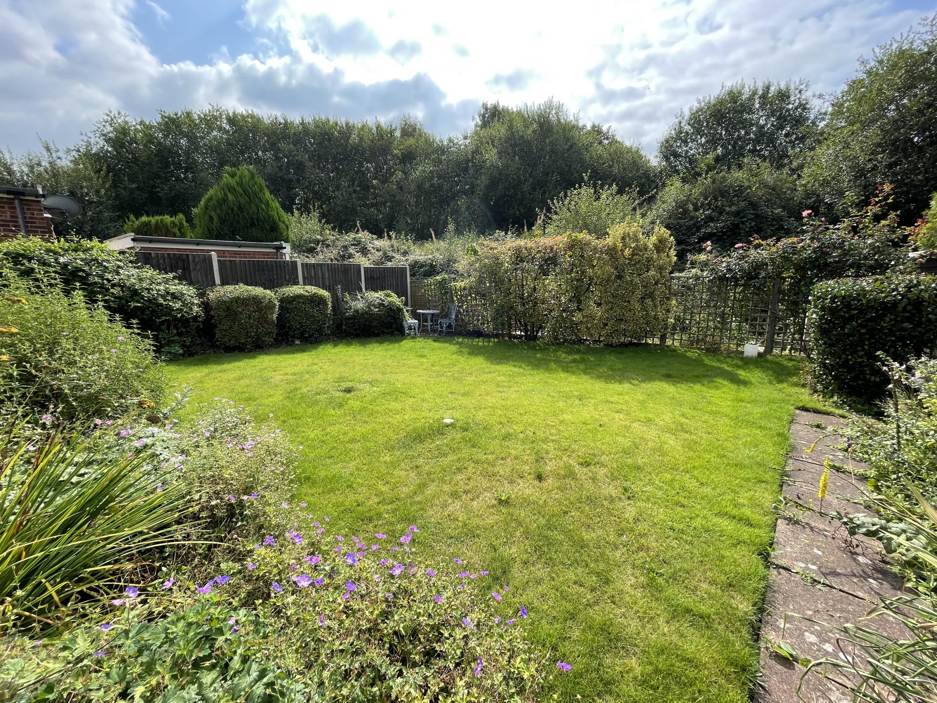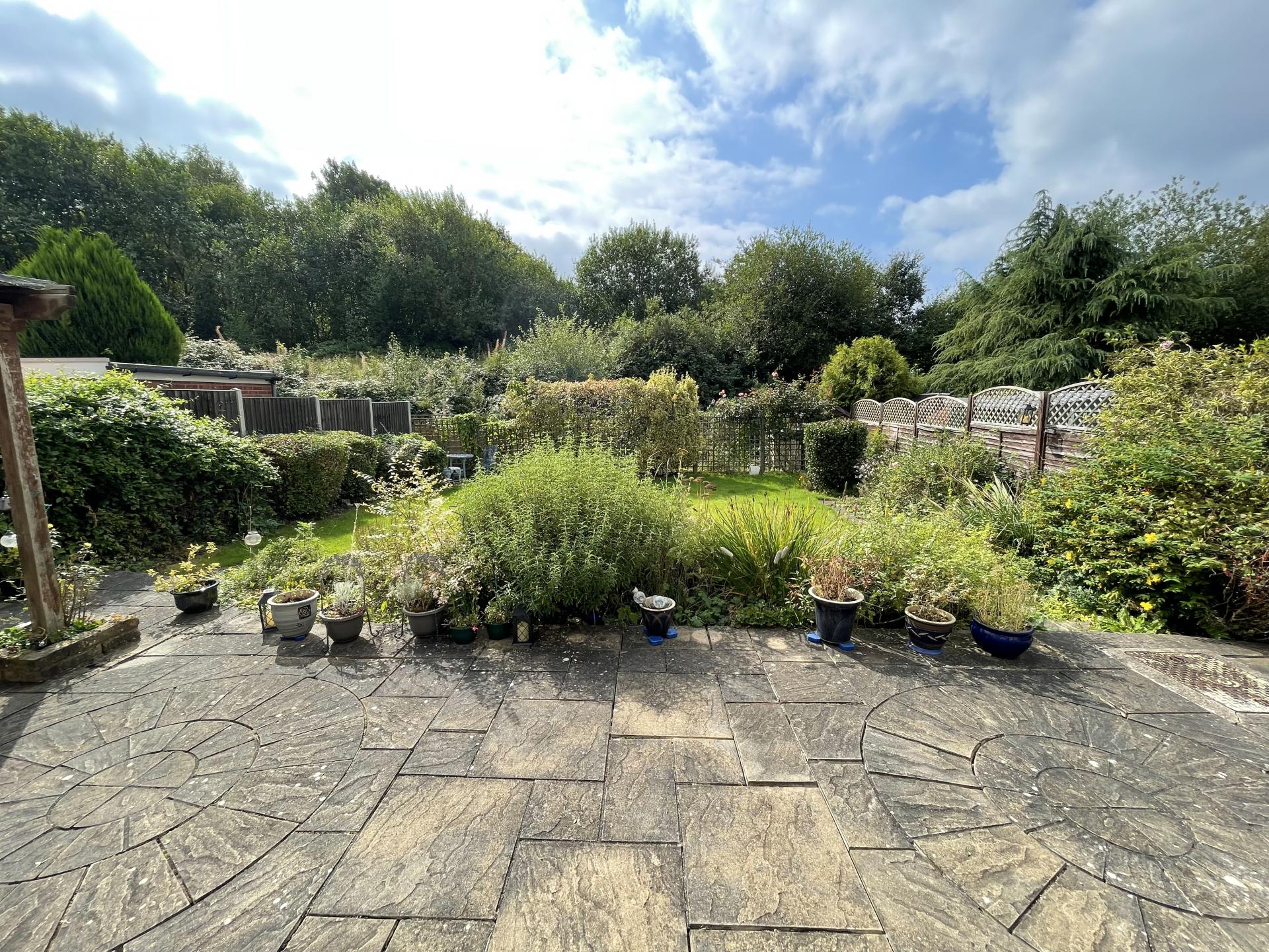 Externally the property benefits from driveway parking, a garage with an up and over door to the front, with access via uPVC door to the rear, accessible from the patio. The rear garden is a good size and is south facing. Accessed through a uPVC double glazed door from the kitchen or the uPVC double glazed French doors in the dining area, this is mainly laid to lawn, with a stone slab patio running the width of the property, an alternate seating area and space enough for a veg patch or allotment space to the very back, presently sectioned off via trellis and hedgerow.