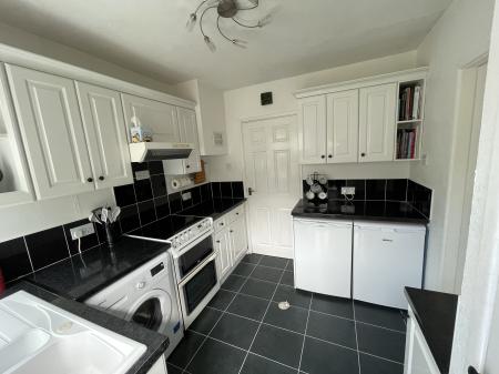 The kitchen benefits from a range of matching eye and low-level units and part-tiled surrounds over laminate work surfaces. There is space and plumbing for an under counter washing machine as well as under counter fridge and freezer units. There is space also for a free-standing oven with an extractor over. There is tiled flooring.