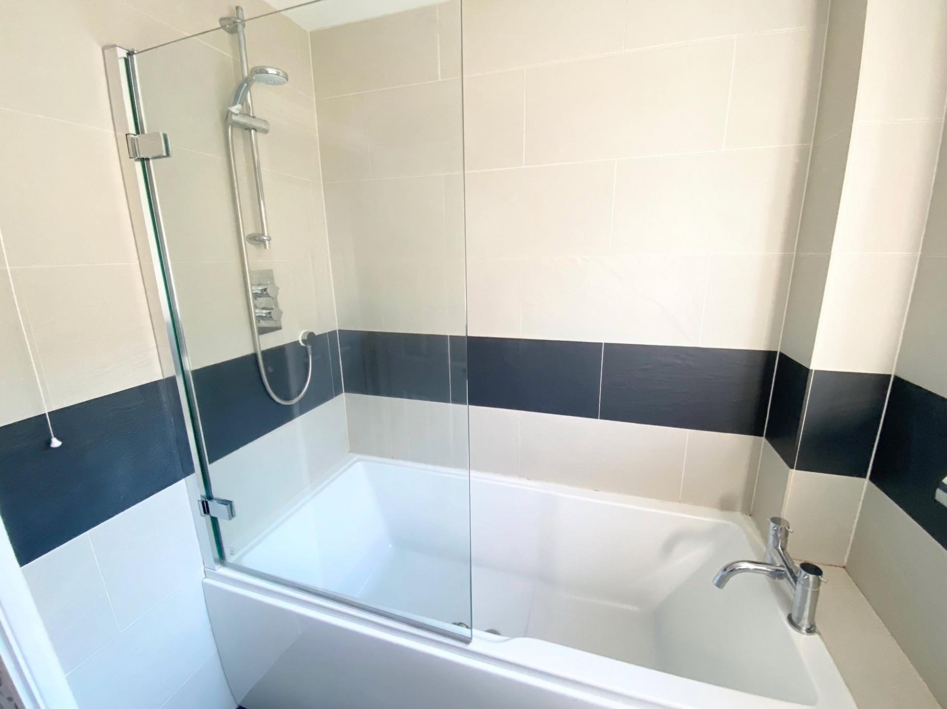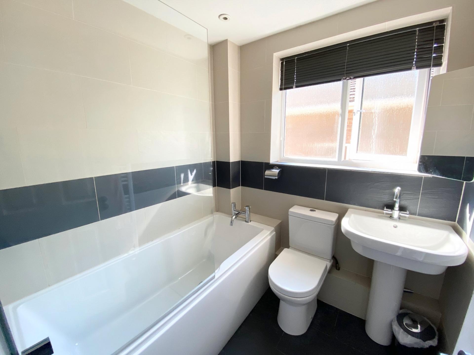 To the first floor are four well-proportioned bedrooms with a range of fitted storage to the master bedroom. The refitted family bathroom features a panel enclosed bath with a wall mounted shower above, pedestal washbasin and a low level flush WC.