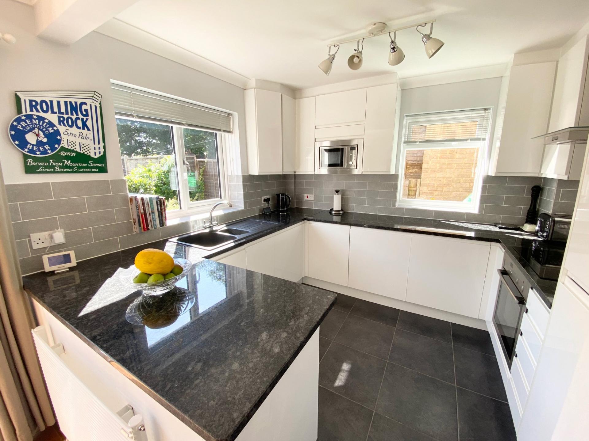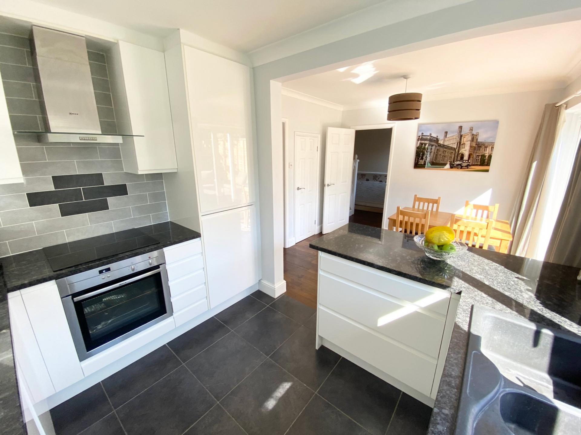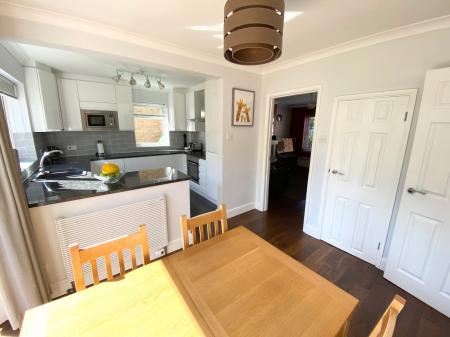 The spacious accommodation comprises a front aspect living room with feature fireplace, to the rear of the property is the refitted kitchen dining room. The kitchen has a matching range of eye and low level units with granite work surfaces and integrated appliances including fridge/freezer, dishwasher, washing machine and oven with gas hob above. The dining area has sliding uPVC double glazed doors leading out to the landscaped rear garden.