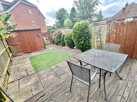 The rear garden is of a sunny aspect and has a decked arear to the rear of the property leading to the artificial grass surrounded by a patio. There is a gate at the bottom of the garden leading to the two allocated parking spaces.