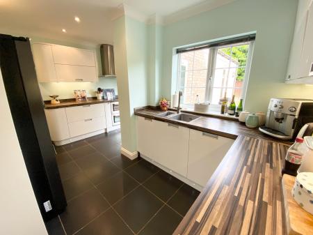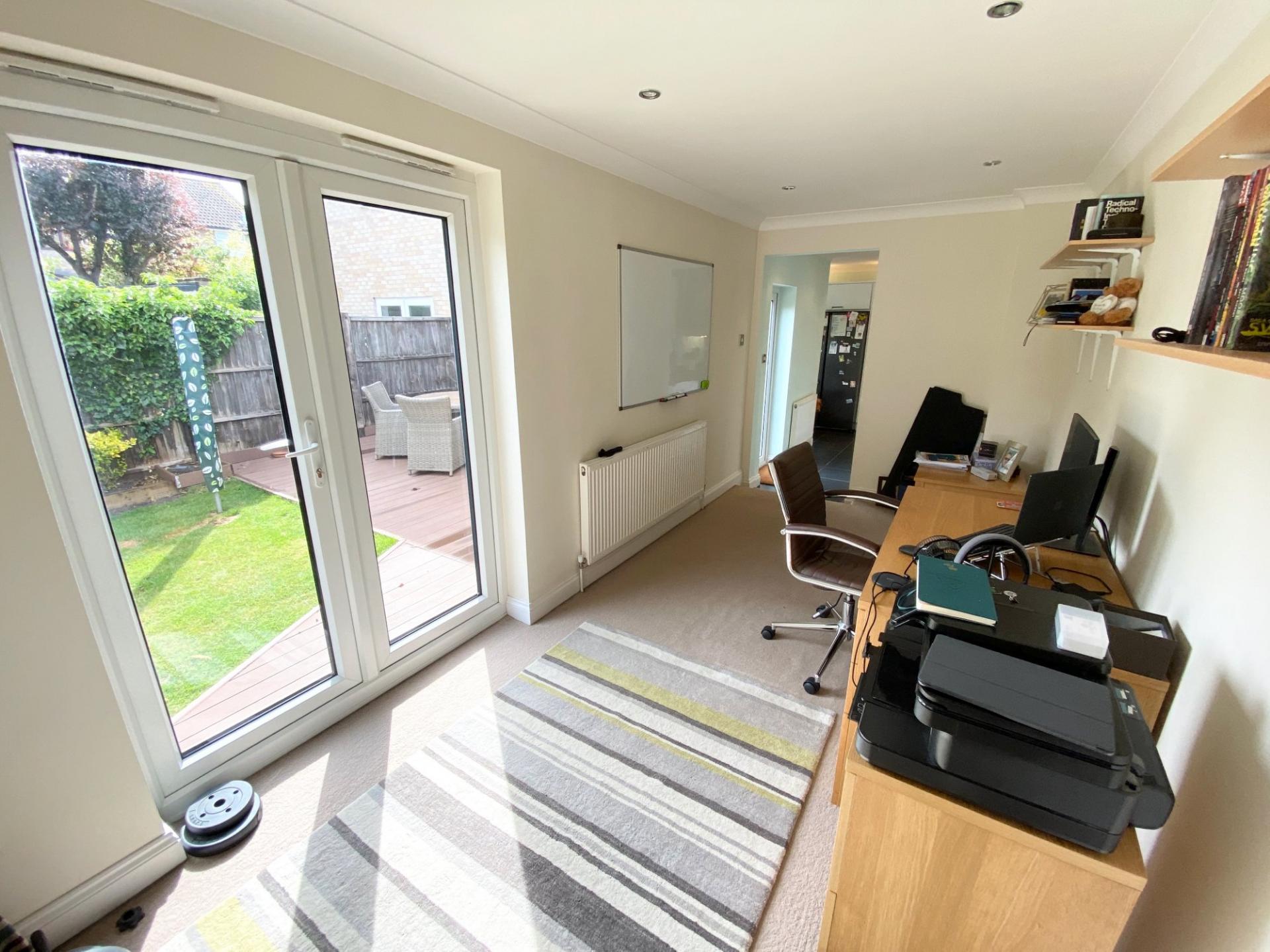 The ground floor accommodation comprises three separate reception arears including a front aspect living room with a bay window overlooking the front of the property and an arch that open through to the dining room. The dining room has a set of uPVC double glazed French Doors that lead out to the rear garden and a door through to the refitted kitchen. The kitchen has a matching range of eye and low level units and integrated appliances including, oven with gas hob above and dishwasher as well as space for an American Style fridge/freezer and a separate utility room with a sink and space for a washing machine. To the rear of the kitchen is the double aspect family/play room (this is currently used as a home office by the current vendors) with uPVC double glazed French Doors out to the rear garden.