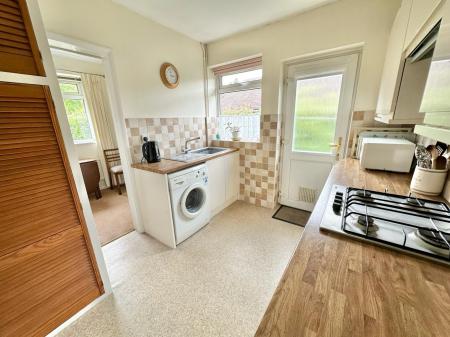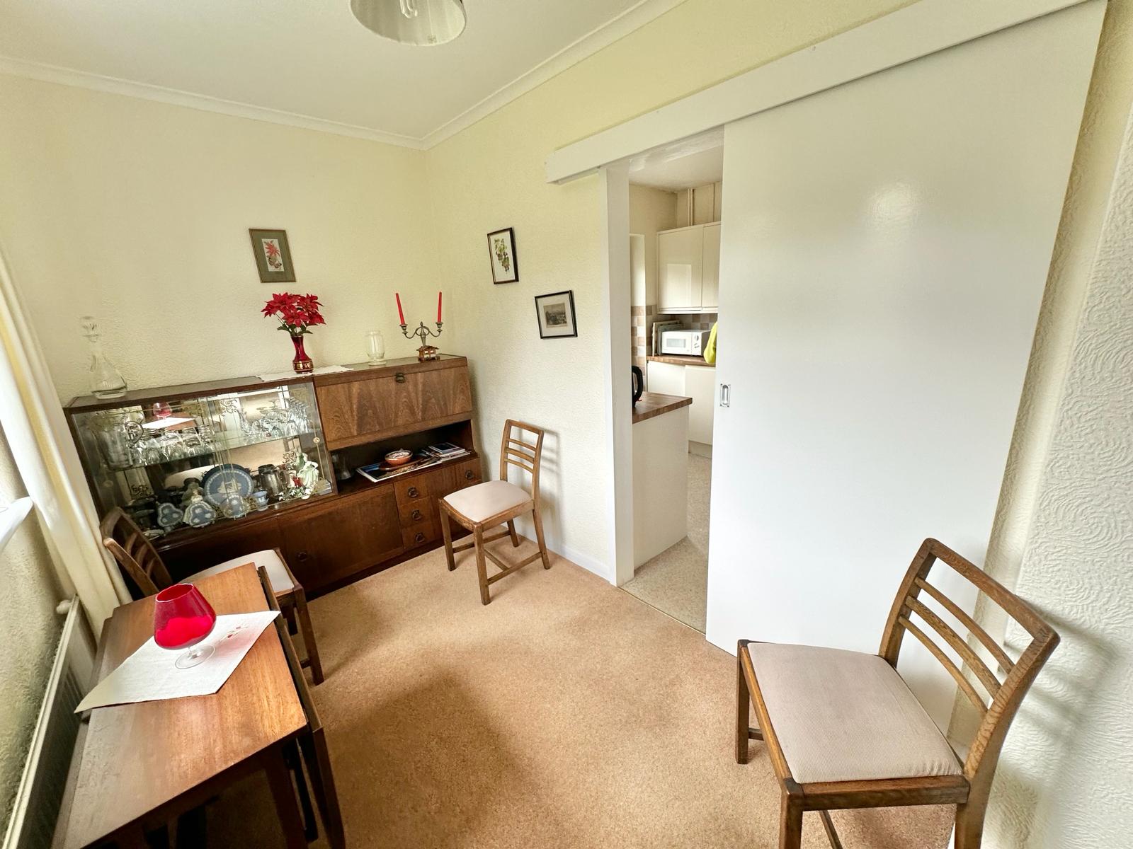 The light and airy accommodation comprises; a rear aspect living room with sliding doors out to the Sunny aspect rear garden and a door through to the rear aspect dining room which in turn leads through to the fitted kitchen. The kitchen comprises; a matching range of high- and low-level units, along with space & plumbing for a washing machine and fridge freezer, as well as an integrated oven with a four ring gas hob above, there is also a UPVC double glazed door leading out to the side of the property. There are two double bedrooms that are positioned at the front of the property overlooking the front driveway & garden.