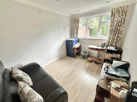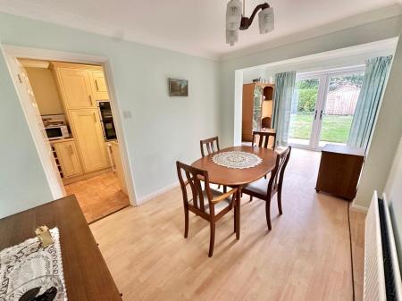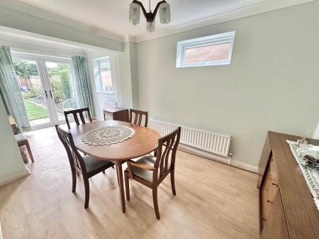 The larger than expected ground floor accommodation comprises a front aspect living room with a gas fire and uPVC double glazed windows overlooking the front of the property, a rear aspect study/playroom as well as a fitted kitchen with intergrated appliances including a waist height double oven, dishwasher, fridge/freezer and a four ring gas hob and a matching range of eye and low level units that leads through to the double aspect dining room with a window to the side of the property and French Doors leading out to the rear garden.