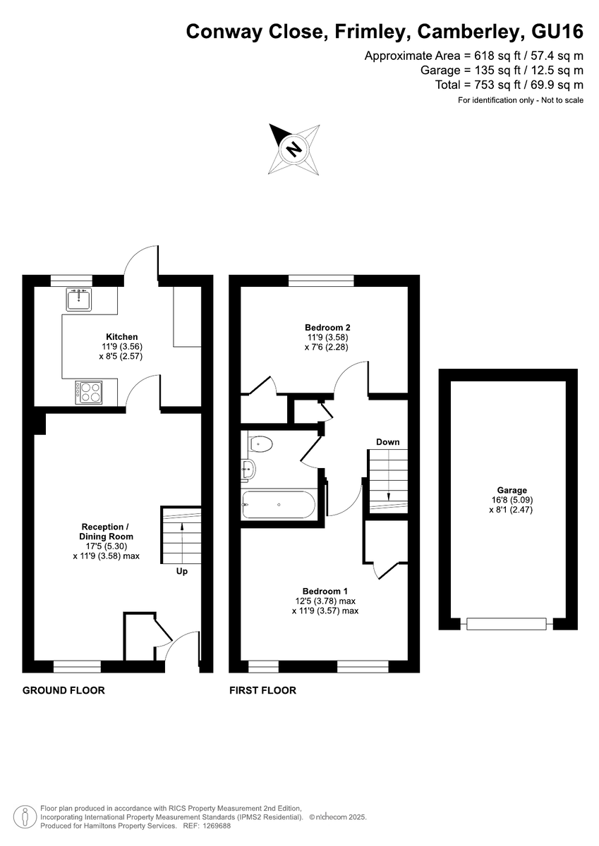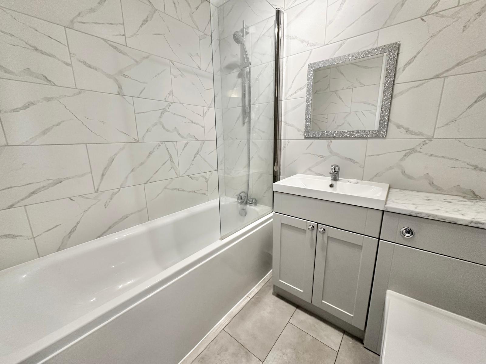 To the first floor there are two double bedrooms both with built in storage. The Family bathroom was refitted to a high standard in November 2024 and boasts a panel enclosed bath with a wall mounted shower above, a wash basin with vanity unit under, a WC with concealed cistern and tiled walls.