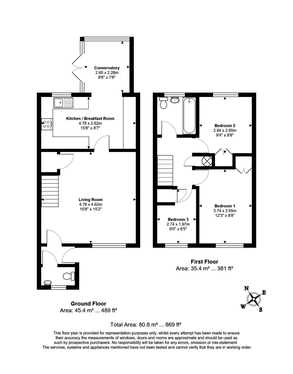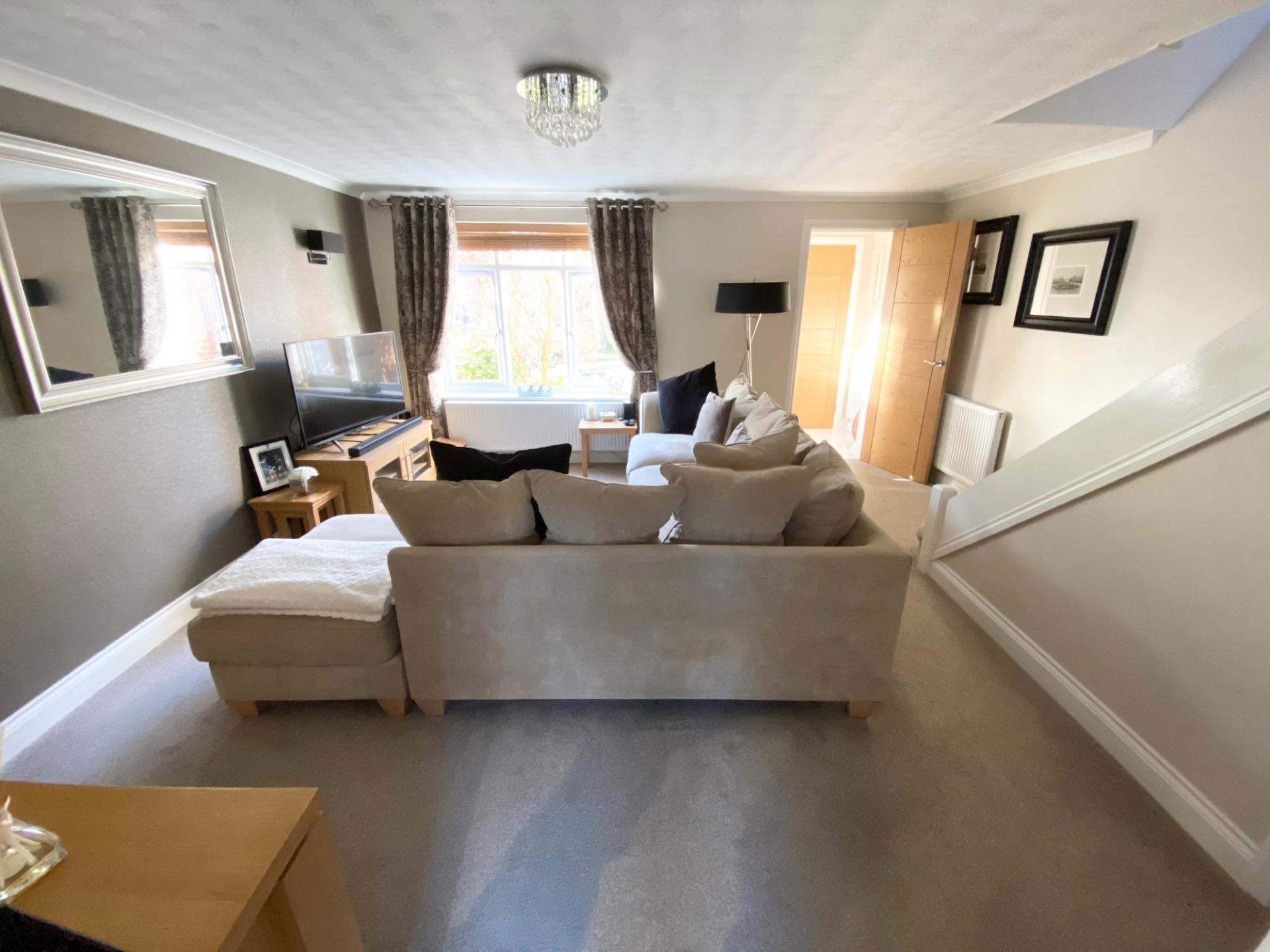 The larger than expected living room overlooks the front of the property and leads to the kitchen breakfast room and conservatory.