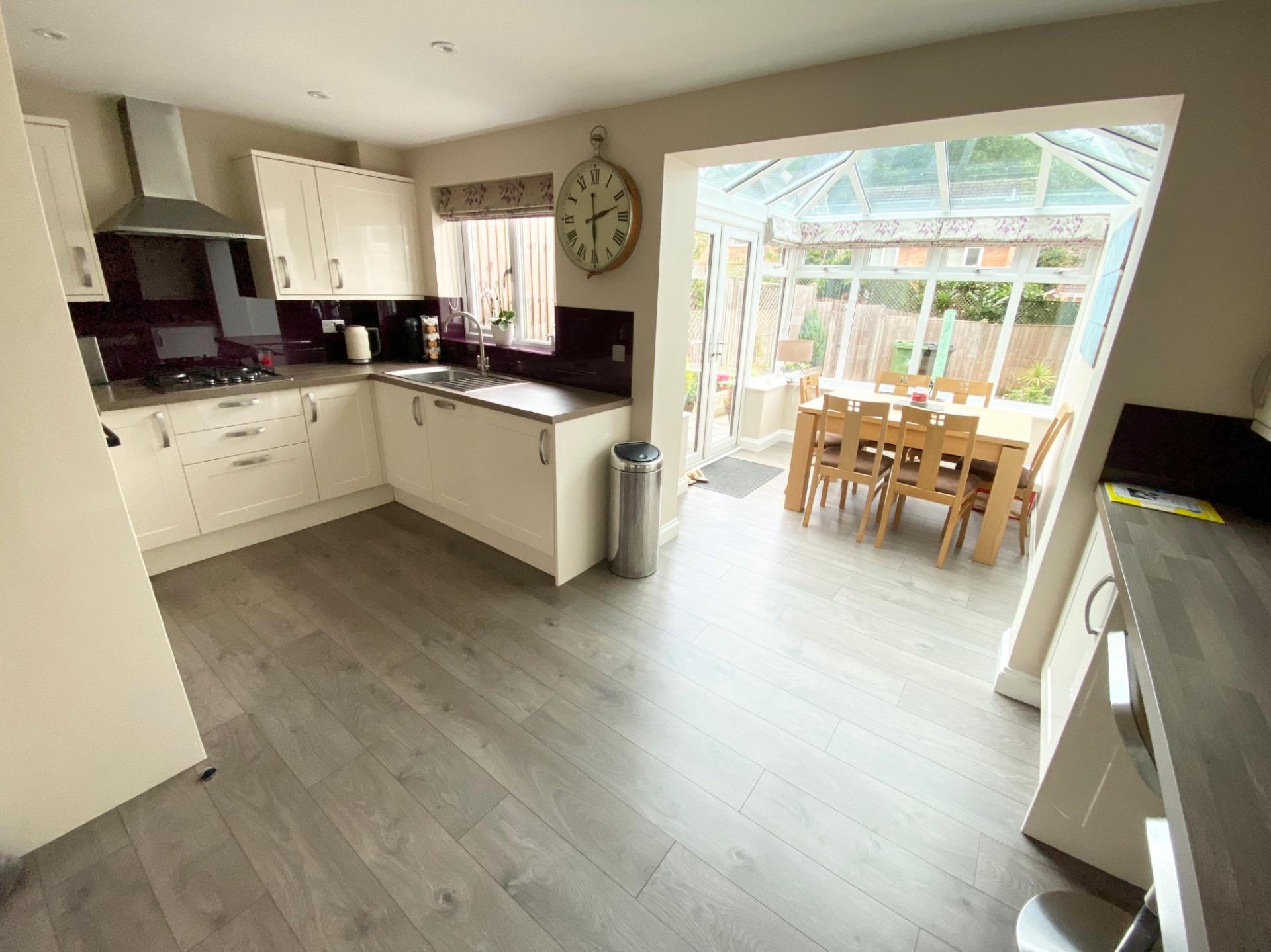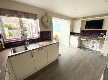 FULL DESCRIPTION This property is presented in show home condition throughout, benefiting from a high quality bespoke newly fitted kitchen/breakfast room with both eye and base level units with coloured glass splash back and fitted waist height oven and microwave, four ring gas hob and stainless steel extractor fan above, integral appliances including fridge/freezer, dishwasher, washing machine and tumble dryer. Further benefits include a breakfast bar and seating area leading to an attractive part bricked conservatory built in 2016, over looking a well planned landscaped garden designed by the current owner.