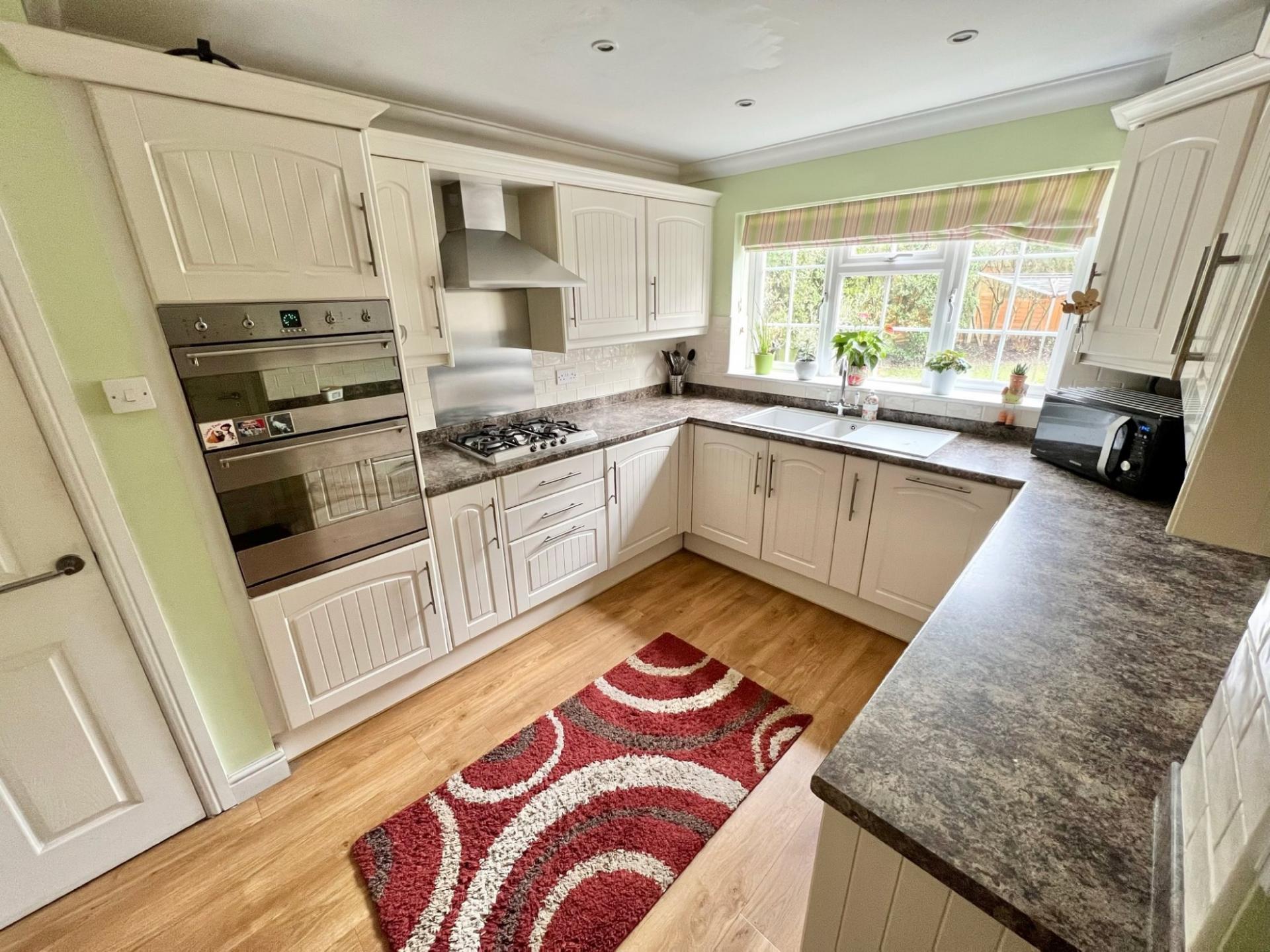 The spacious ground floor comprises a double aspect living/dining room with a bay window to the front of the property and French Doors leading out to the rear garden, as well as an opening through to the conservatory and Kitchen. The kitchen has a matching range of eye and low level units, integrated appliances including waist height oven and separate grill, four ring gas hob and dishwasher. There are doors from the kitchen leading to the hallway, dining area and a large utility room. The utility room give access to the garage and the rear garden and features a range of units integrated fridge & Freezer as well as sink.
