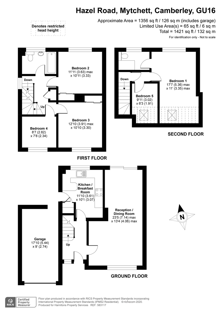 To the first floor are three well portioned bedrooms and the family bath room. The master suite with a double aspect bedroom, en suite bath room and dressing room/bedroom 5 are situated on the second floor.