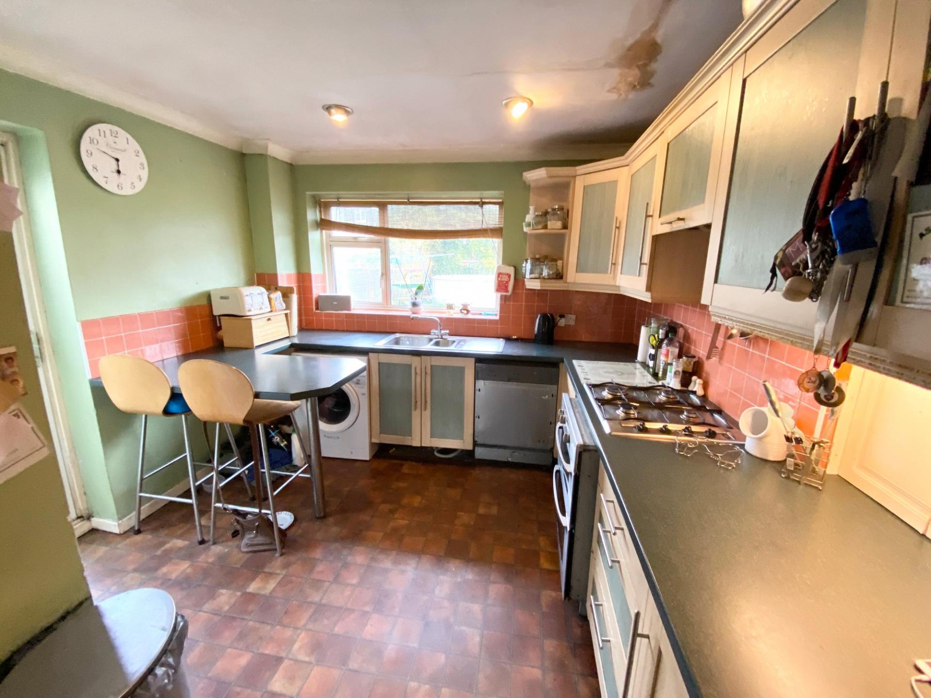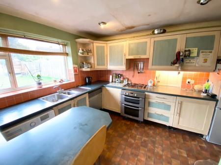 The ground floor accommodation comprises a double aspect open plan living/dining room with uPVC double glazed windows overlooking the front of the property, and sliding doors from the dining area leading out to the sunny aspect rear garden and serving hatch into the kitchen. The double aspect kitchen has double glazed windows overlooking to the rear garden and a door leading out to the garden, a matching range of eye and low level units with space and plumbing for integrated appliances.