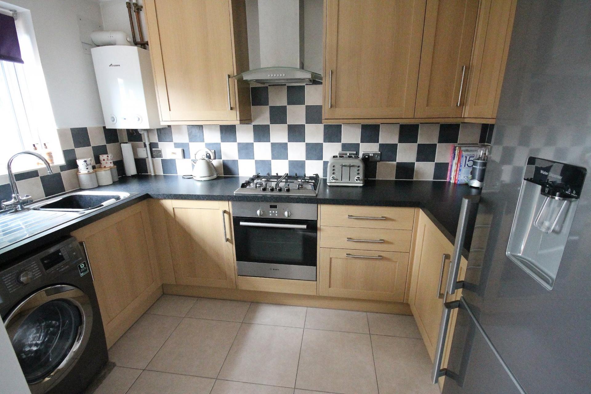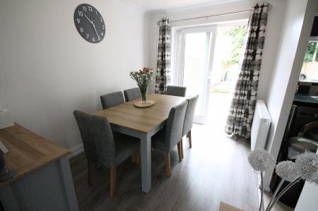 FULL DESCRIPTION The ground floor accommodation comprises an entrance hall giving access to the front aspect living room with double glazed windows overlooking the front garden. The living room leads through to the rear aspect dining room with French Doors leading out to the rear garden and an opening through to the fitted kitchen. The kitchen has a matching range of eye and low level units with an integrated oven with gas hob and extractor hood above, as well as space and plumbing for a washing matching and fridge/freezer.